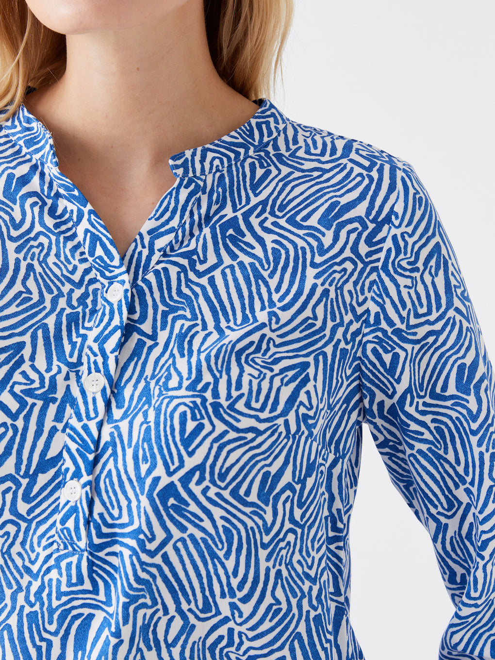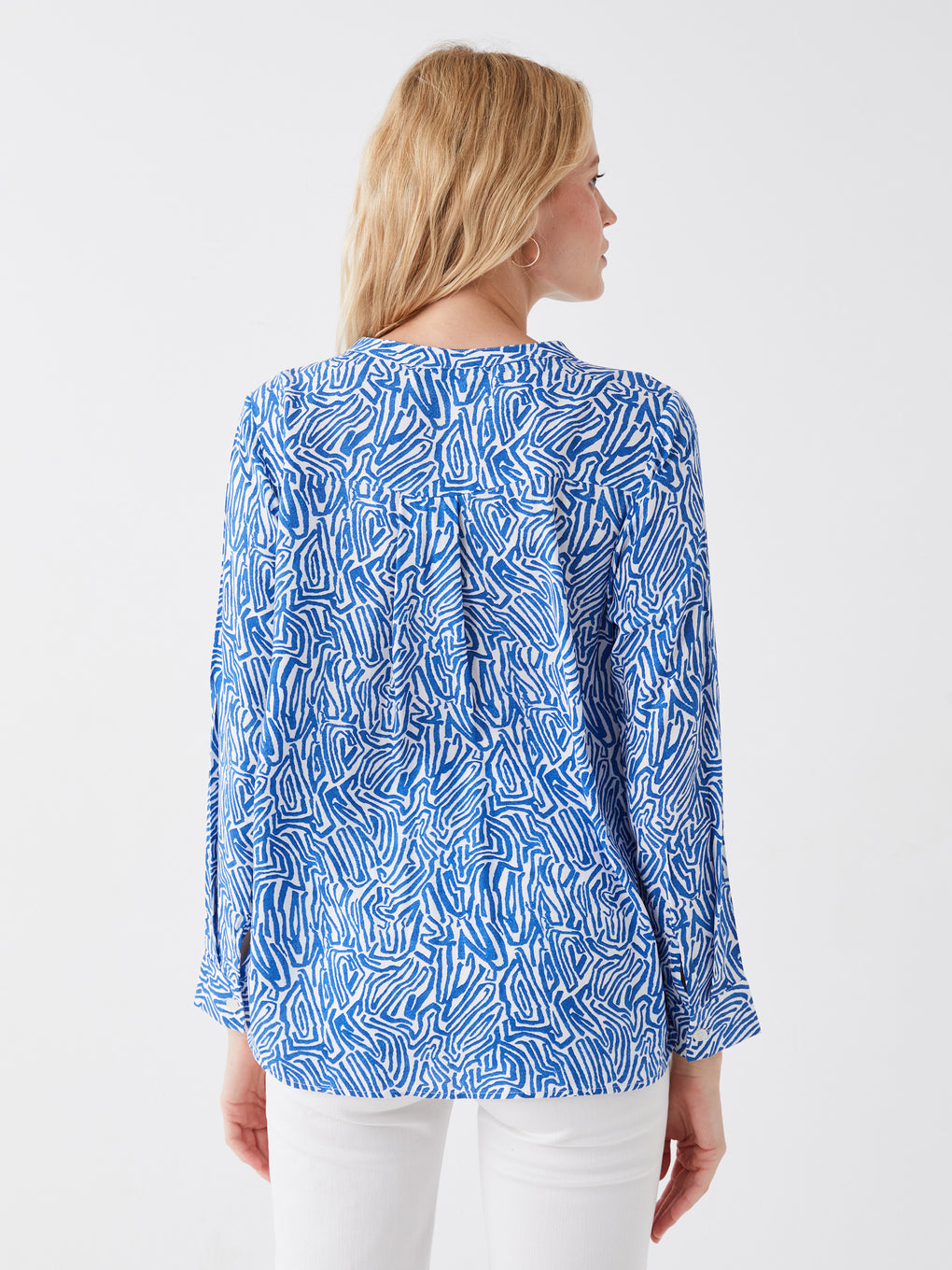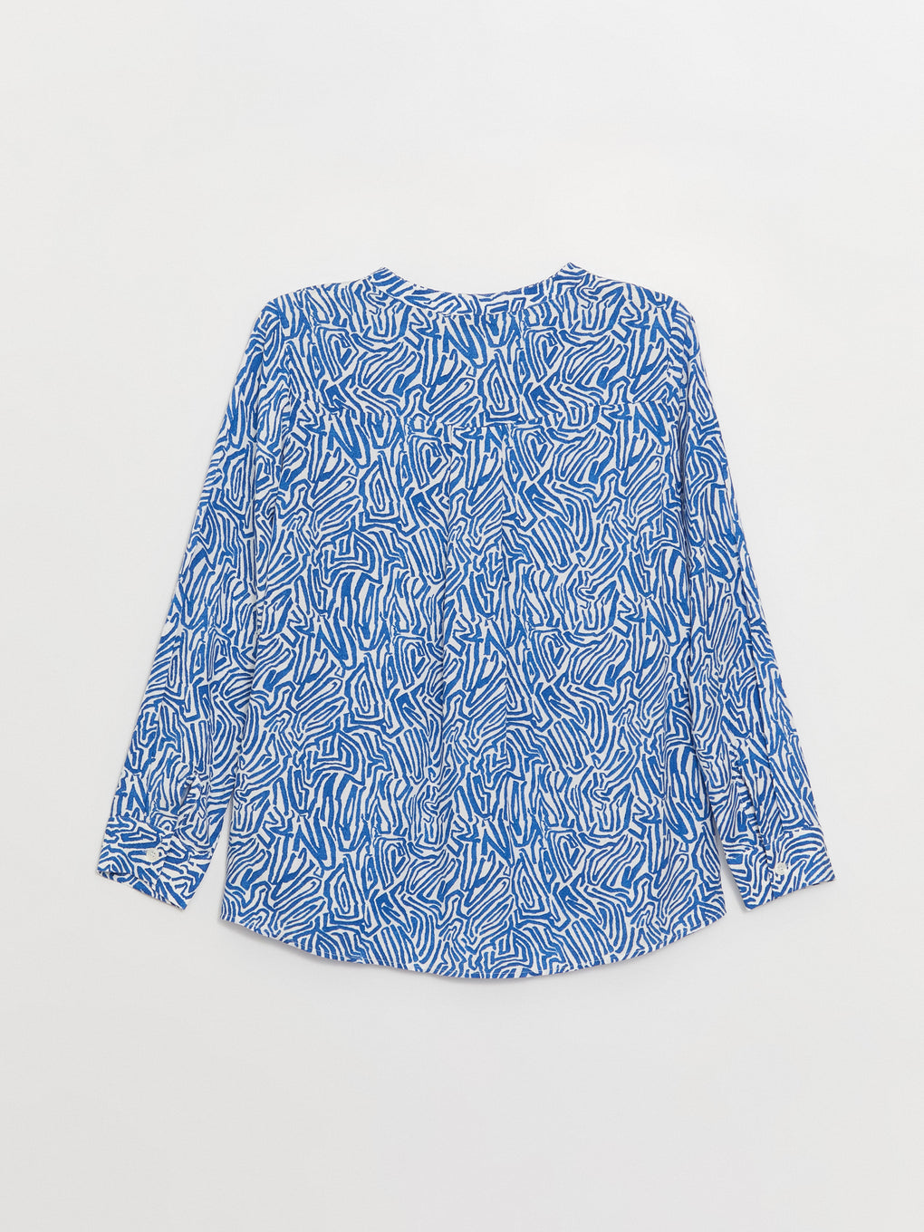 Henley Neckline Patterned Long Sleeve Women's Blouse