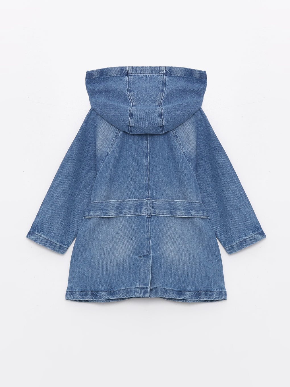 Hooded Long Sleeve Jean Baby Girl Trench Coat