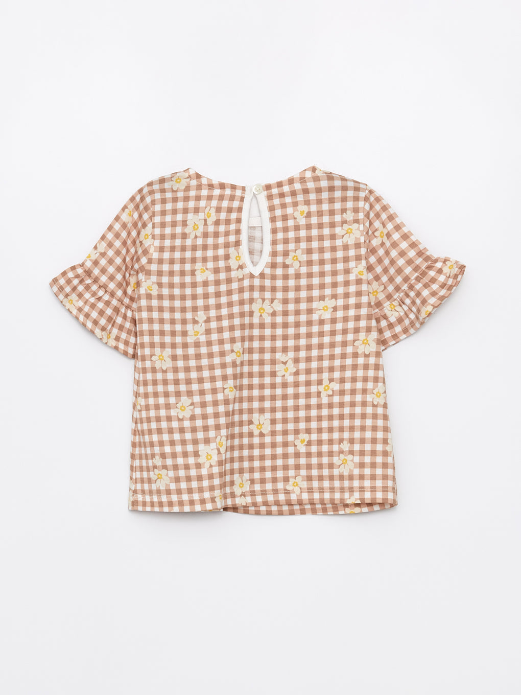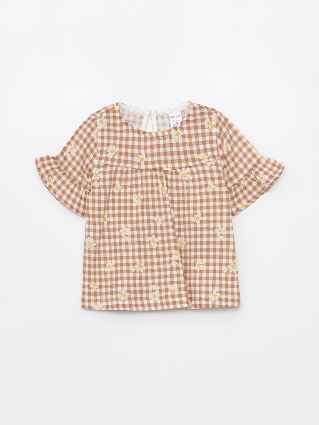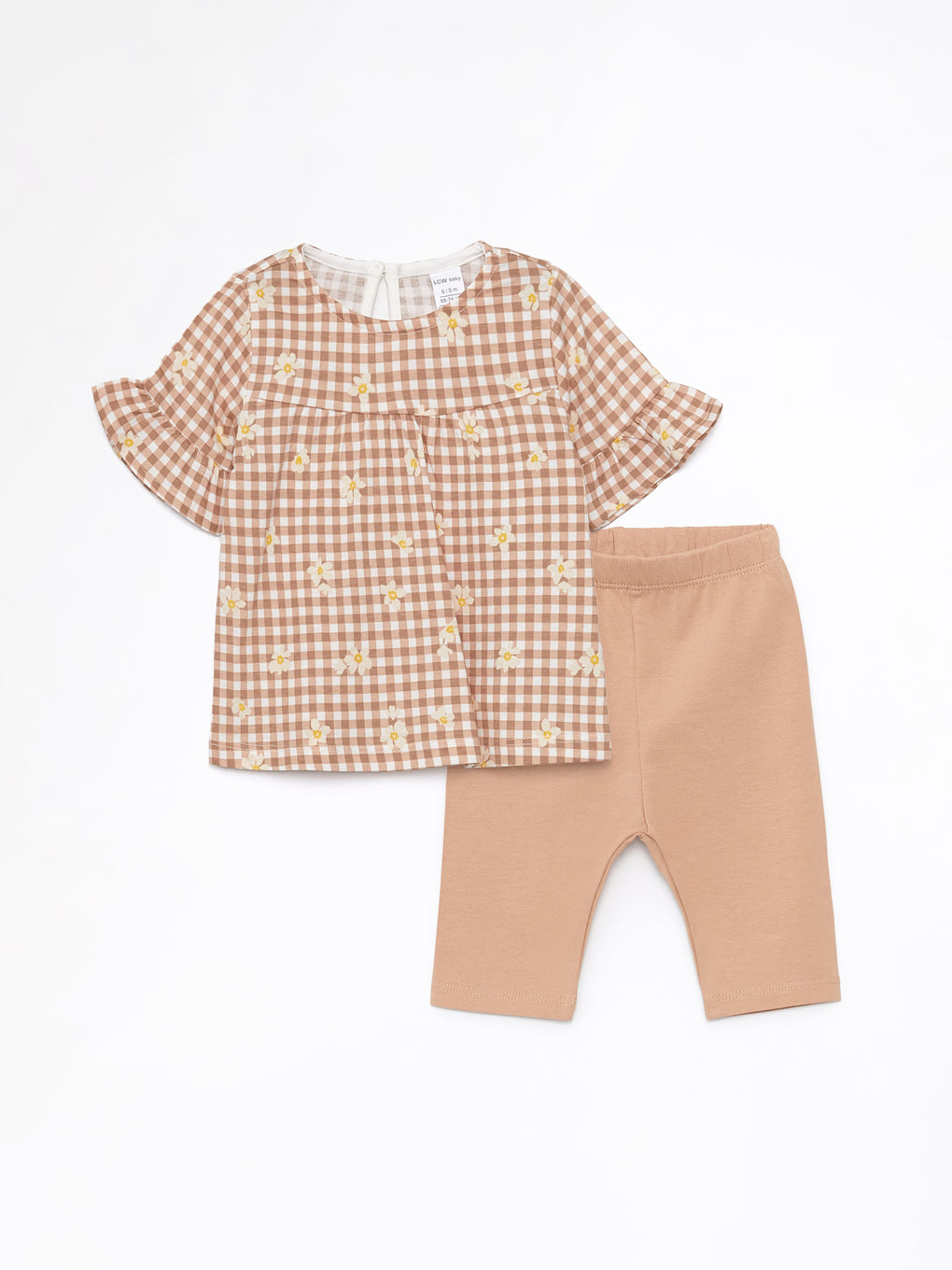 Crew Neck Floral Patterned Baby Girl Blouse and Tights 2-Piece Set