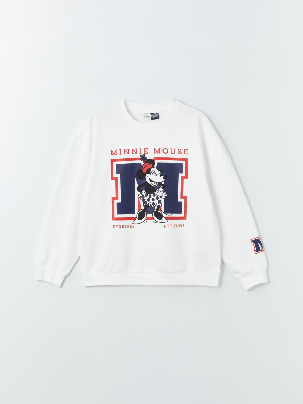 Crew Neck Minnie Mouse Printed Long Sleeve Girl Sweatshirt
