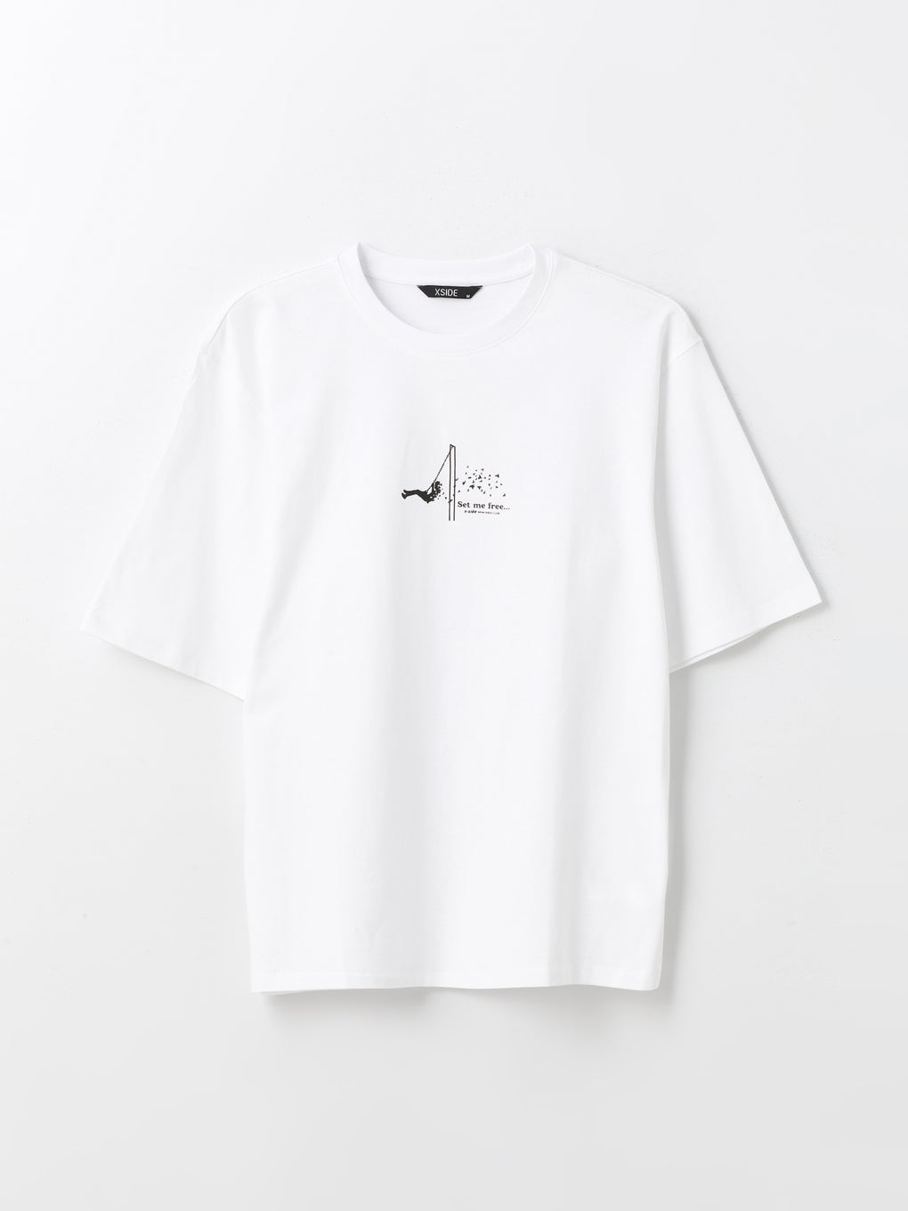 Crew Neck Short Sleeve Printed Combed Cotton Men's T-shirt