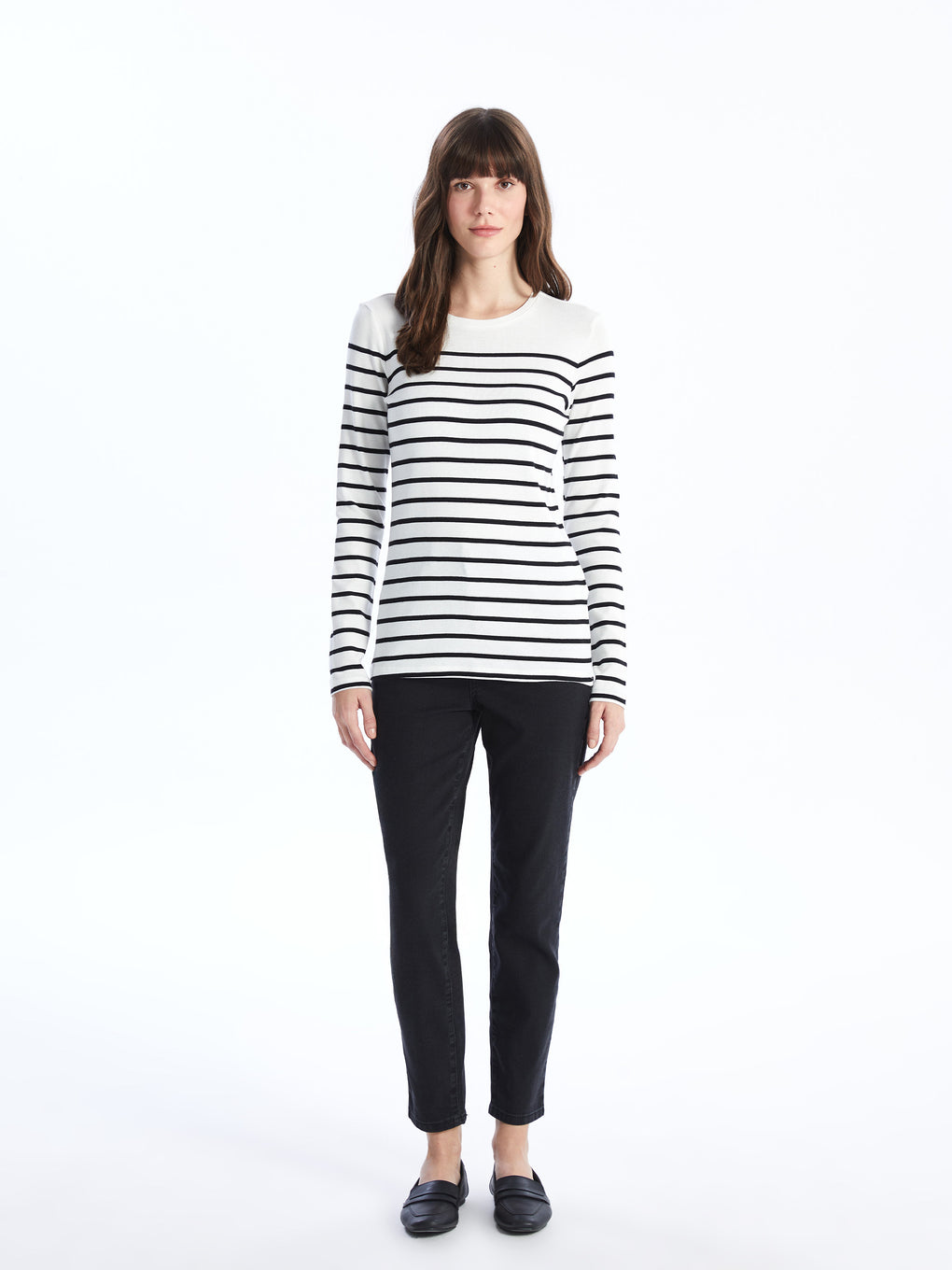 Crew Neck Striped Long Sleeve Women's T-shirt