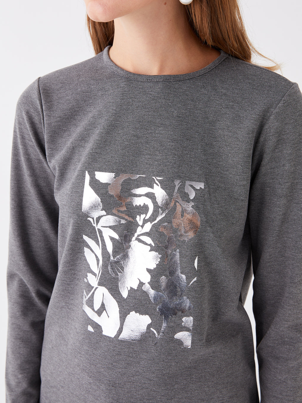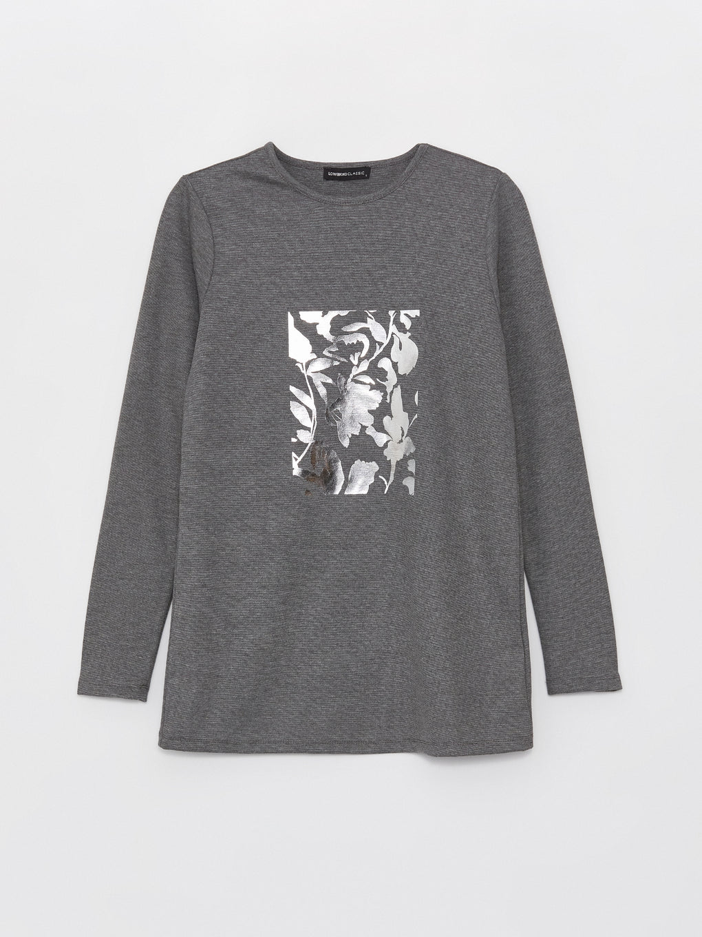 Crew Neck Printed Long Sleeve Women's T-shirt