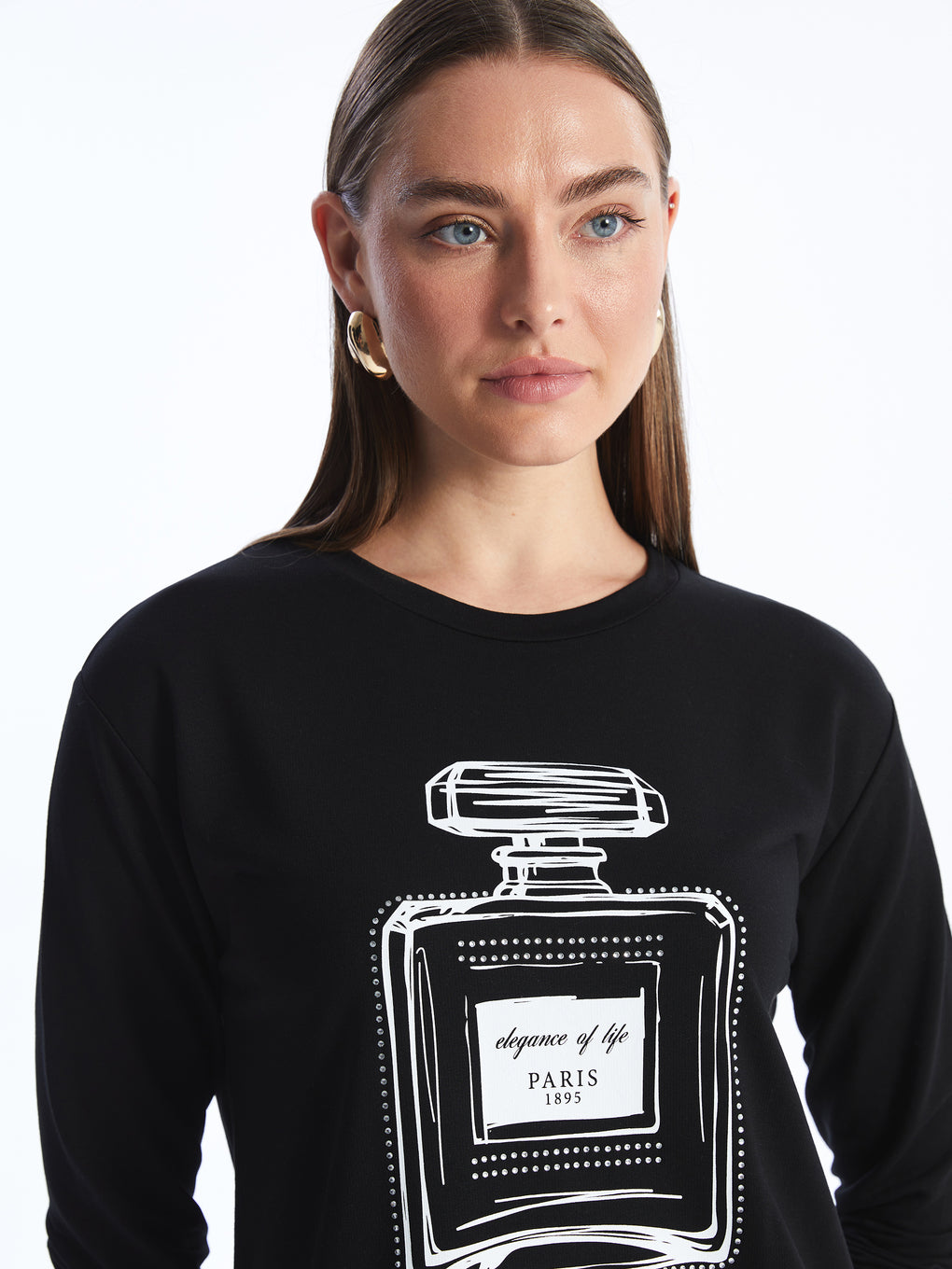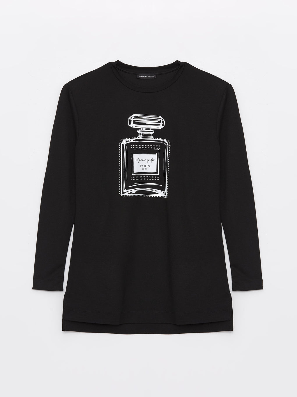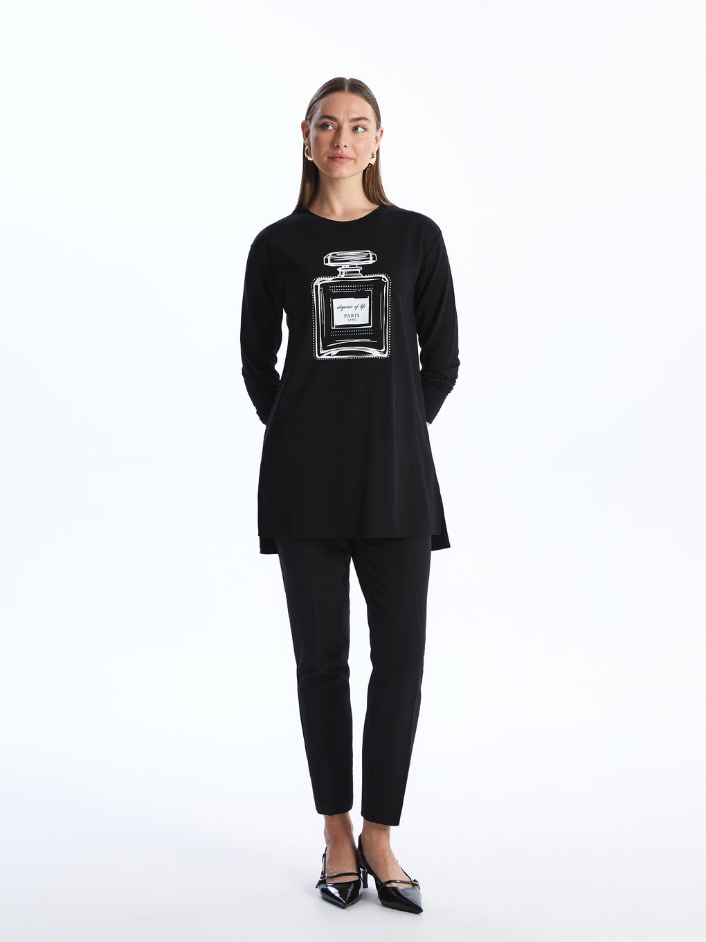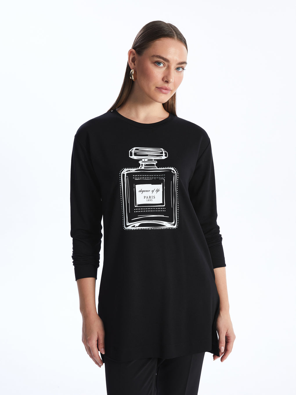 Crew Neck Printed Long Sleeve Women's Sweatshirt Tunic