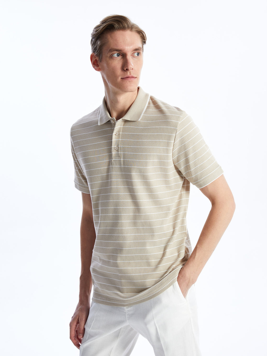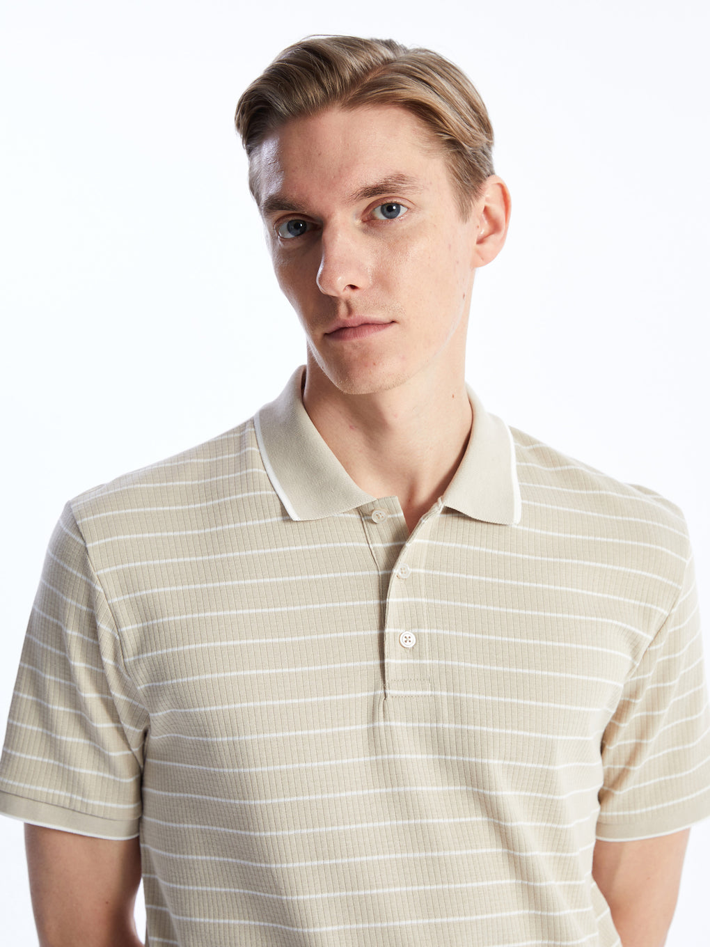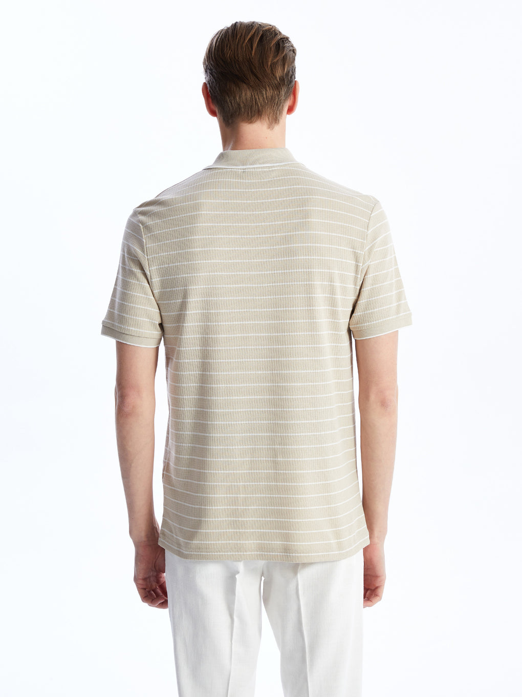 Polo Neck Short Sleeve Striped Men's T-Shirt