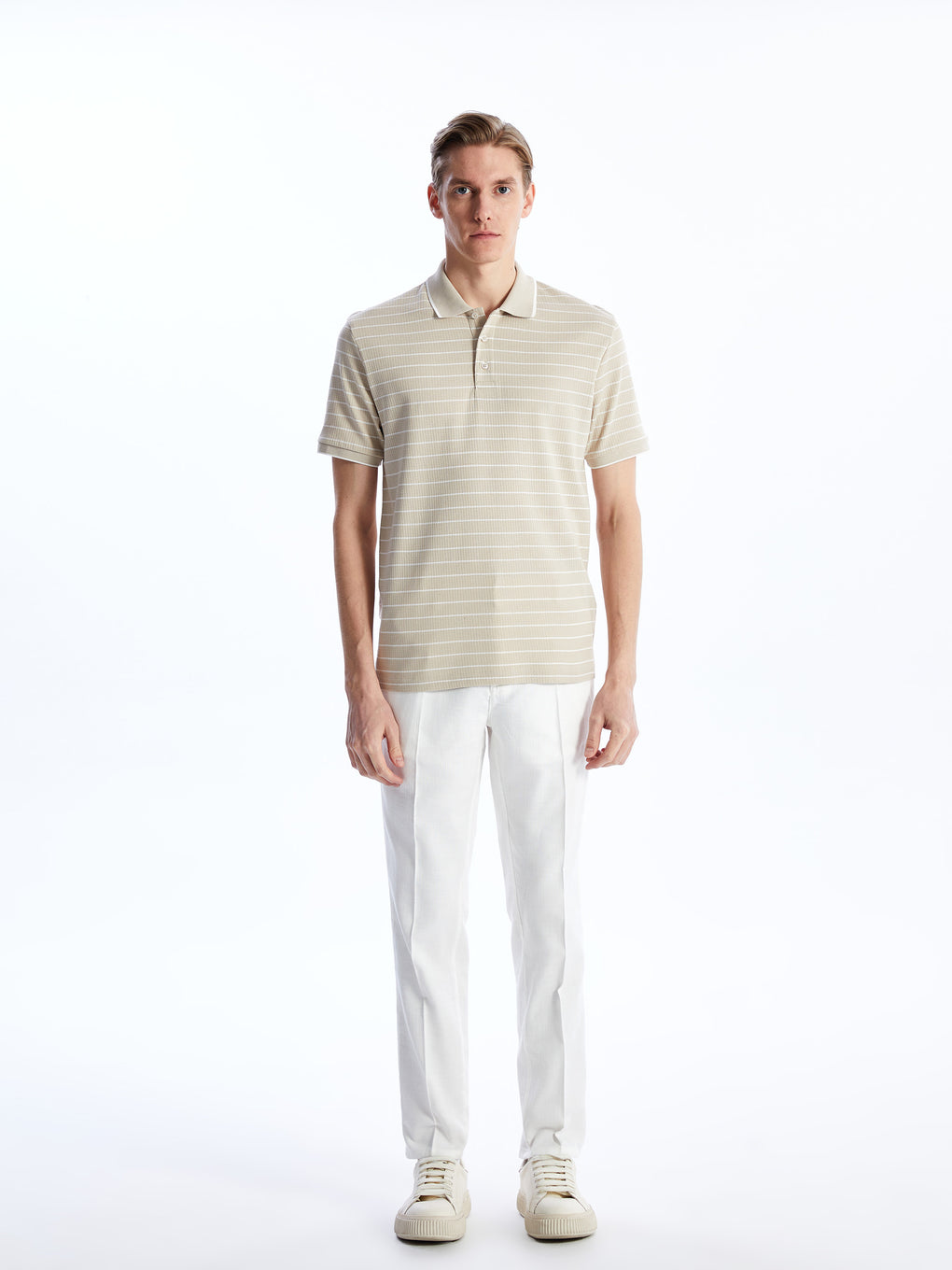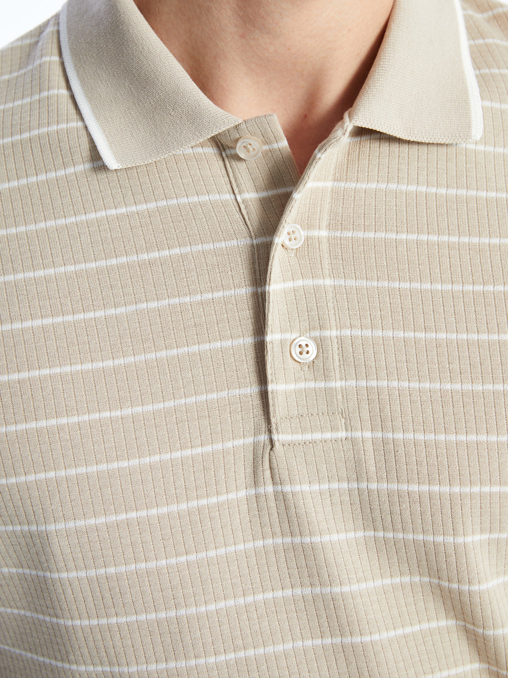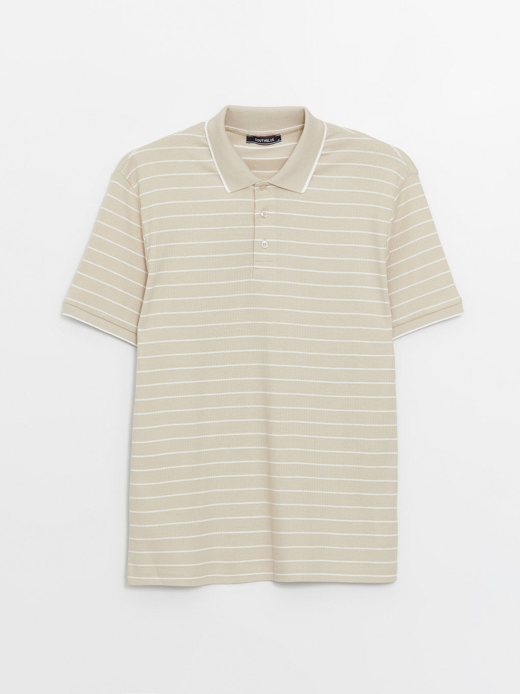 Polo Neck Short Sleeve Striped Men's T-Shirt