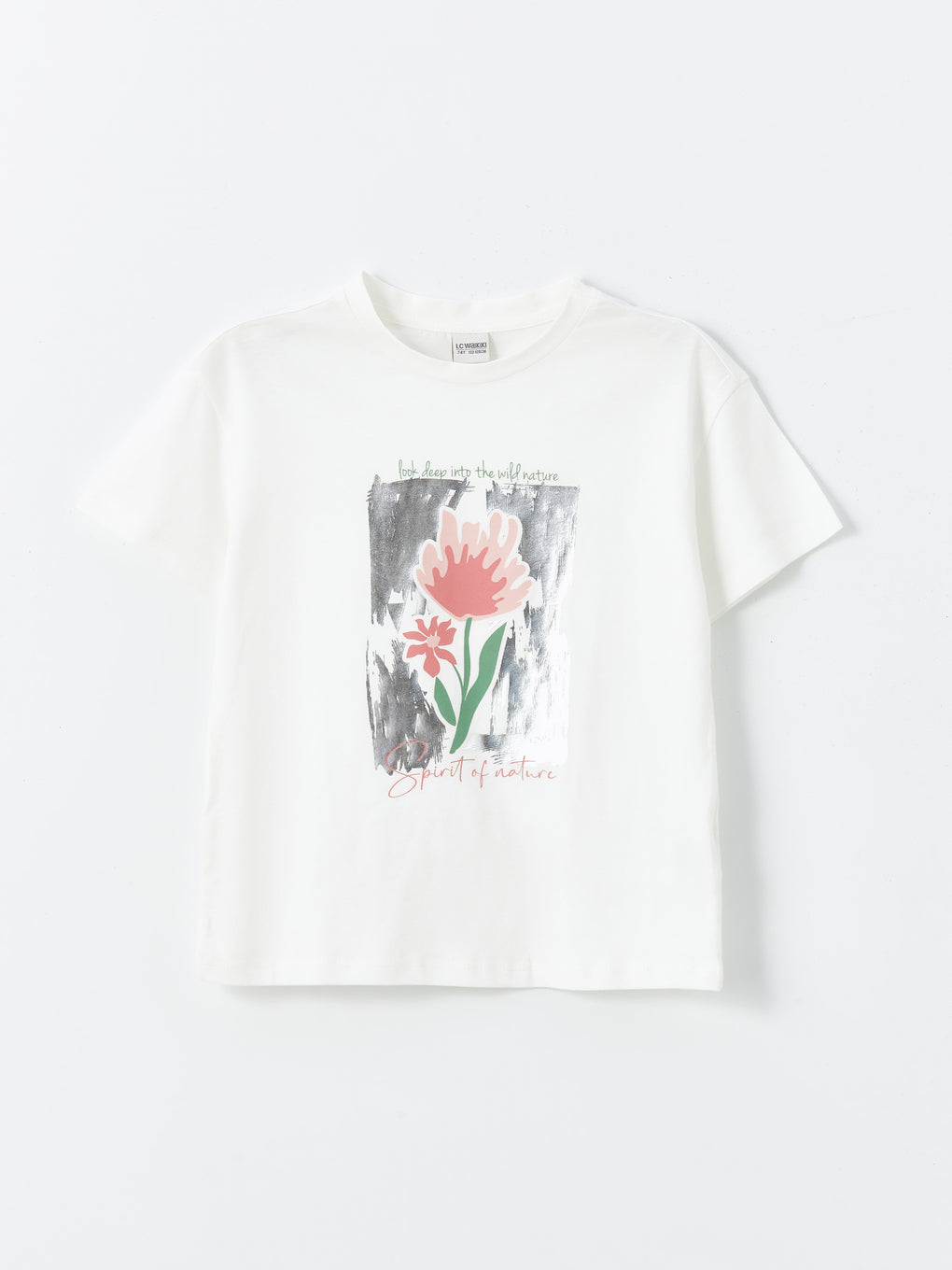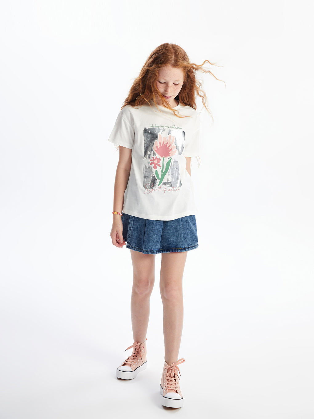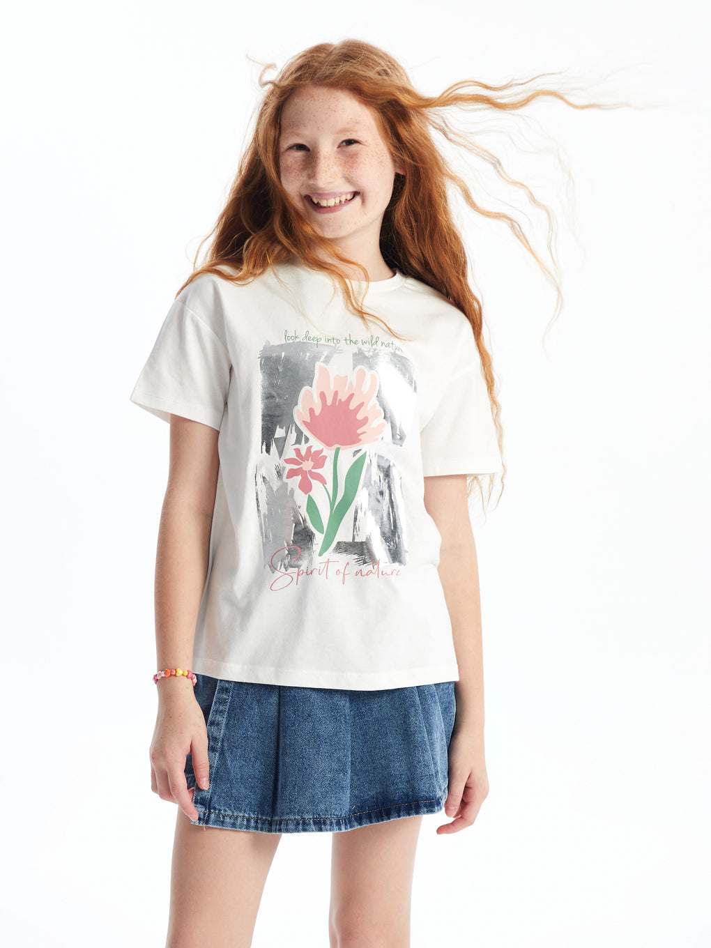 Crew Neck Printed Short Sleeve Girl T-shirt