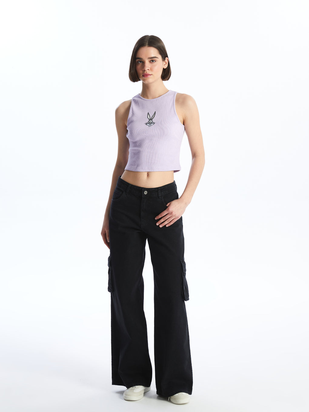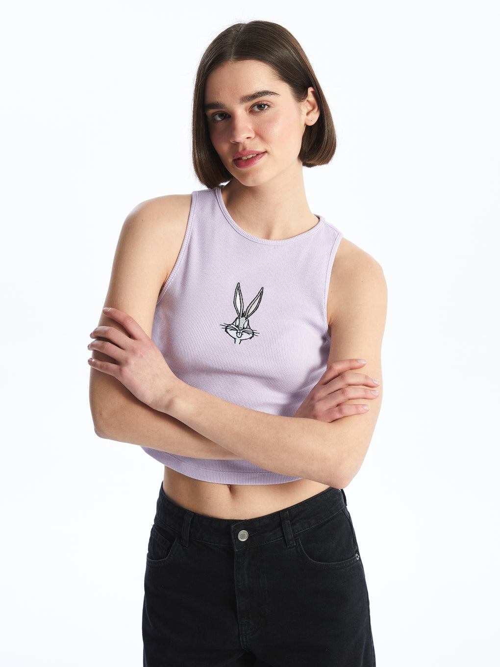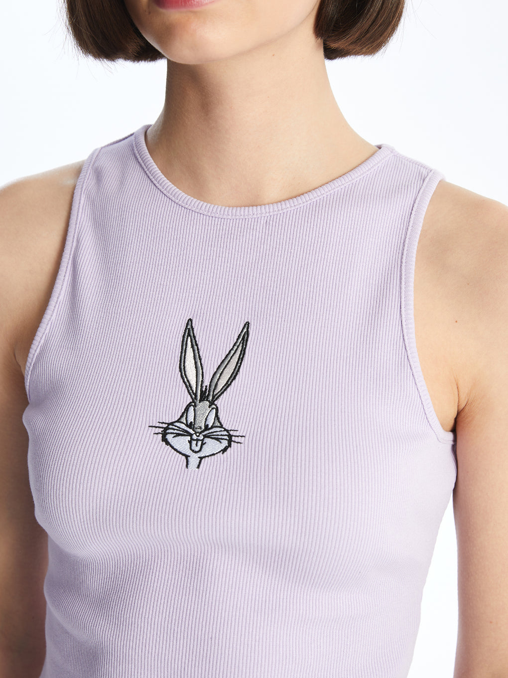 Crew Neck Bugs Bunny Embroidered Women's Crop Undershirt