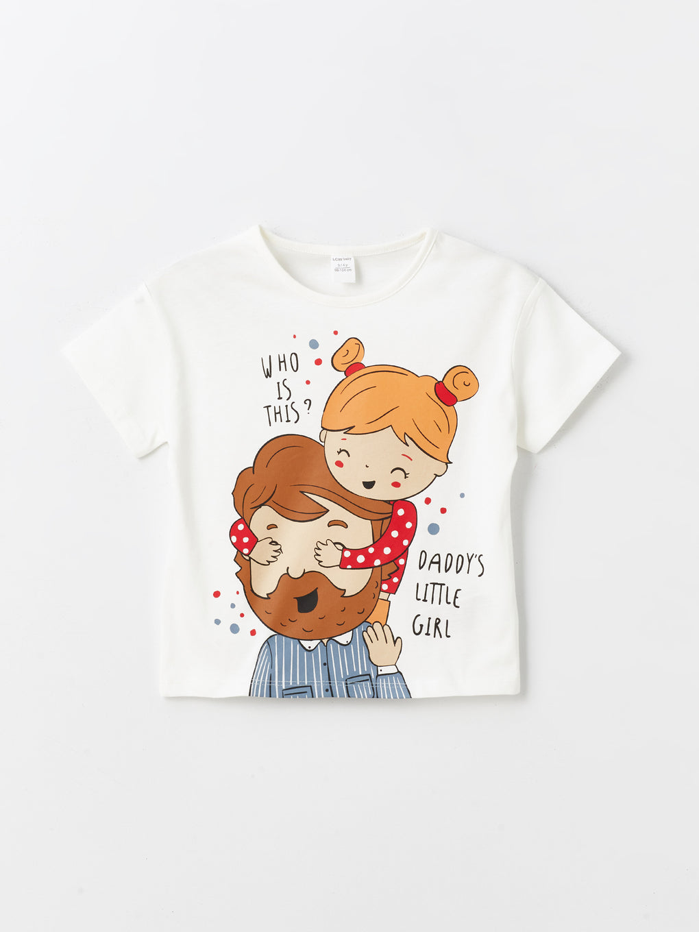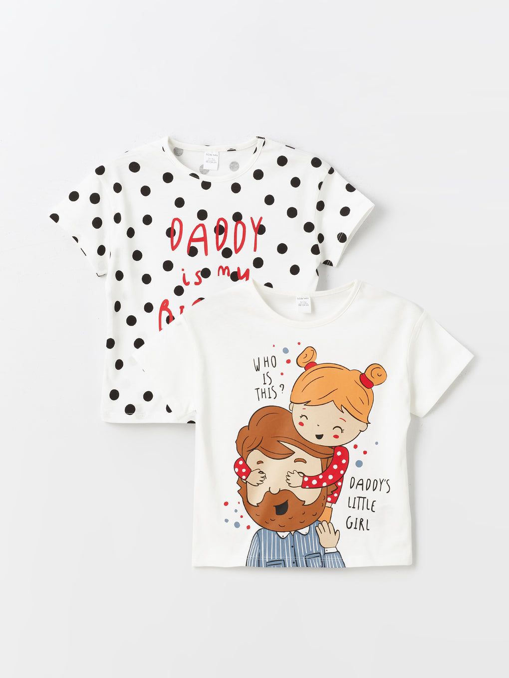 Printed Crew Neck Printed Short Sleeve Baby Girl T-Shirt, Pack of 2
