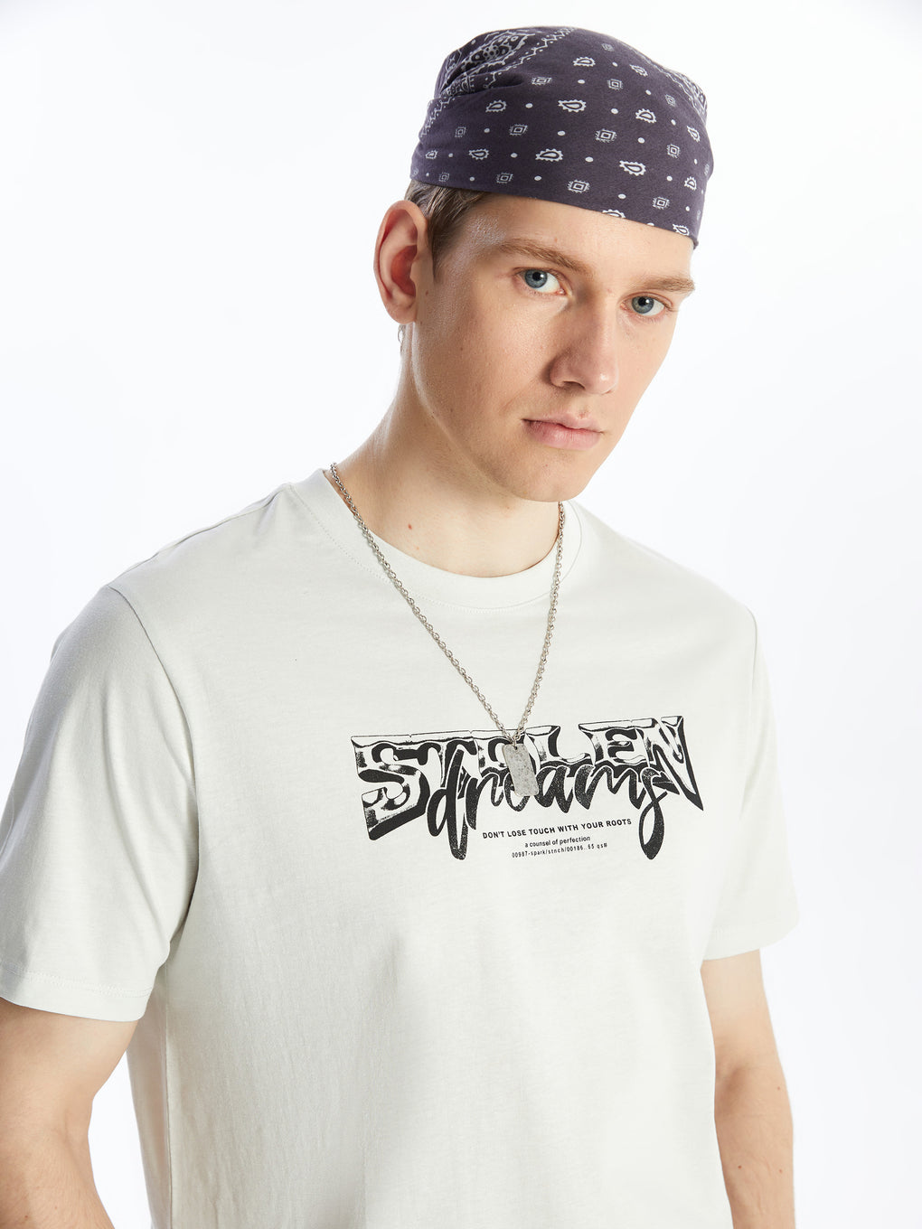 Crew Neck Short Sleeve Printed Combed Cotton Men's T-shirt