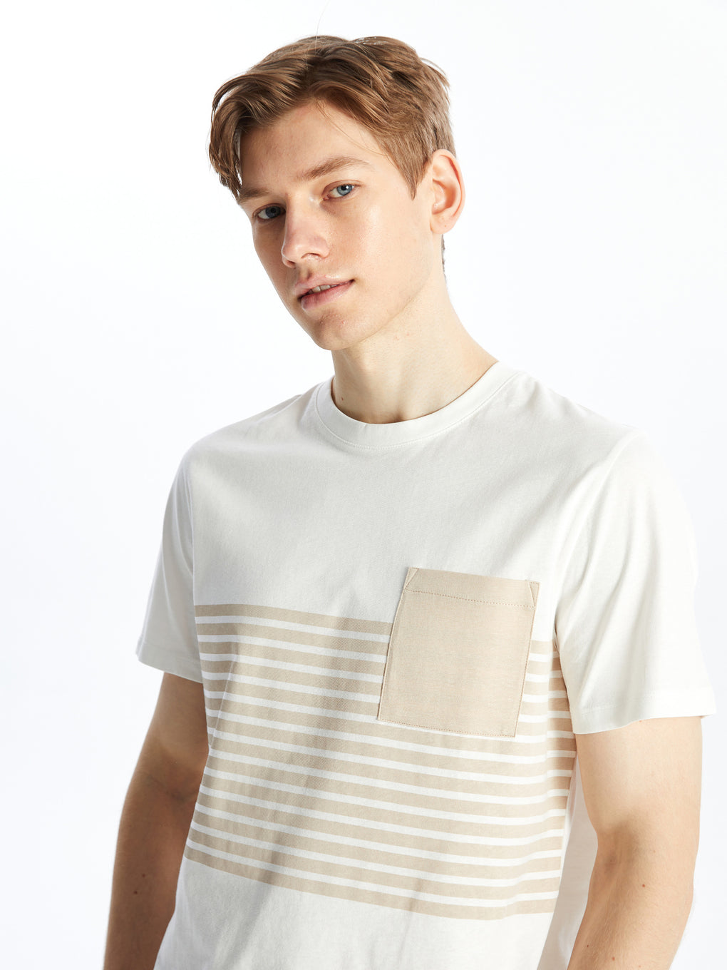 Crew Neck Short Sleeve Striped Combed Cotton Men's T-shirt