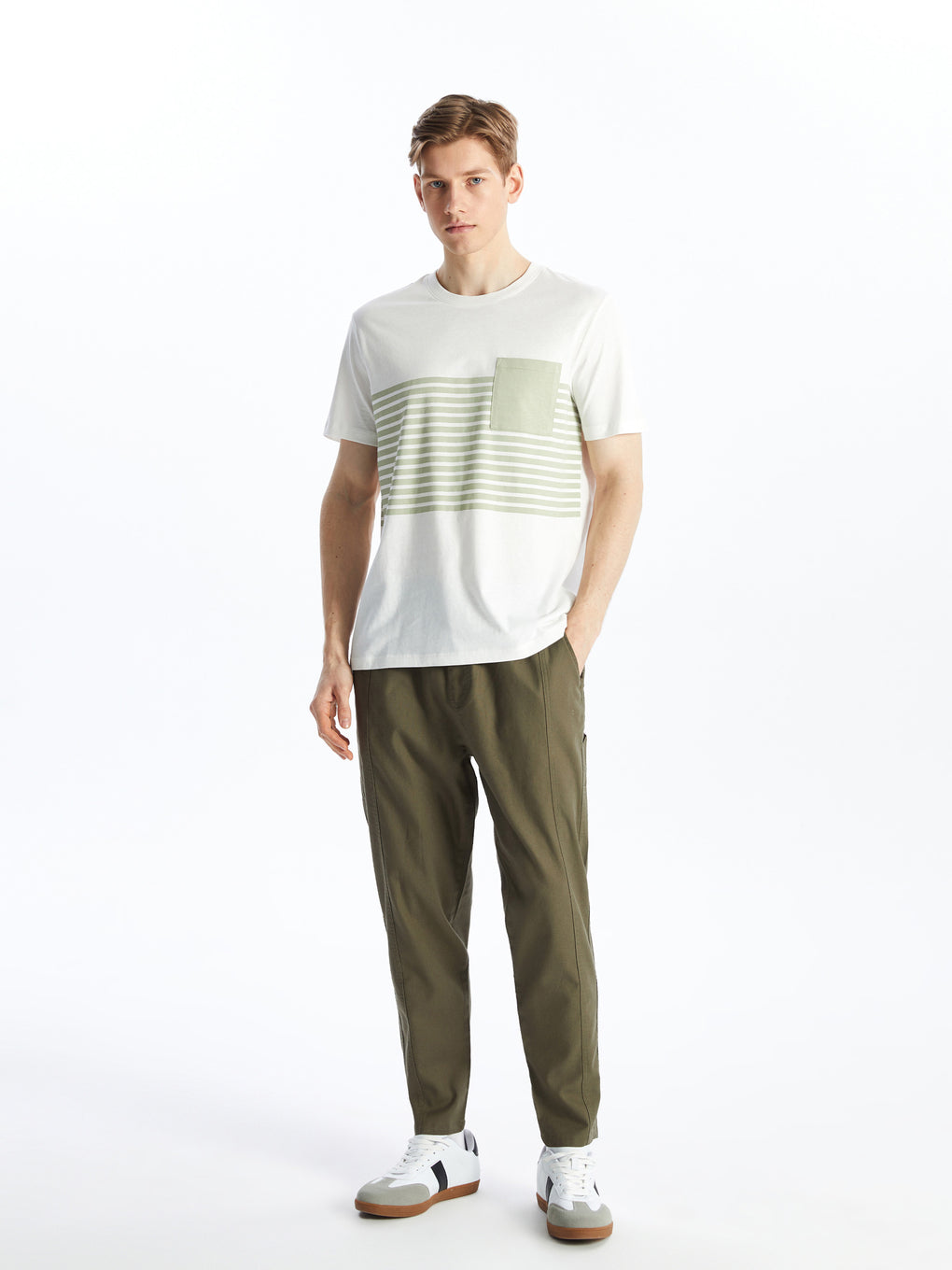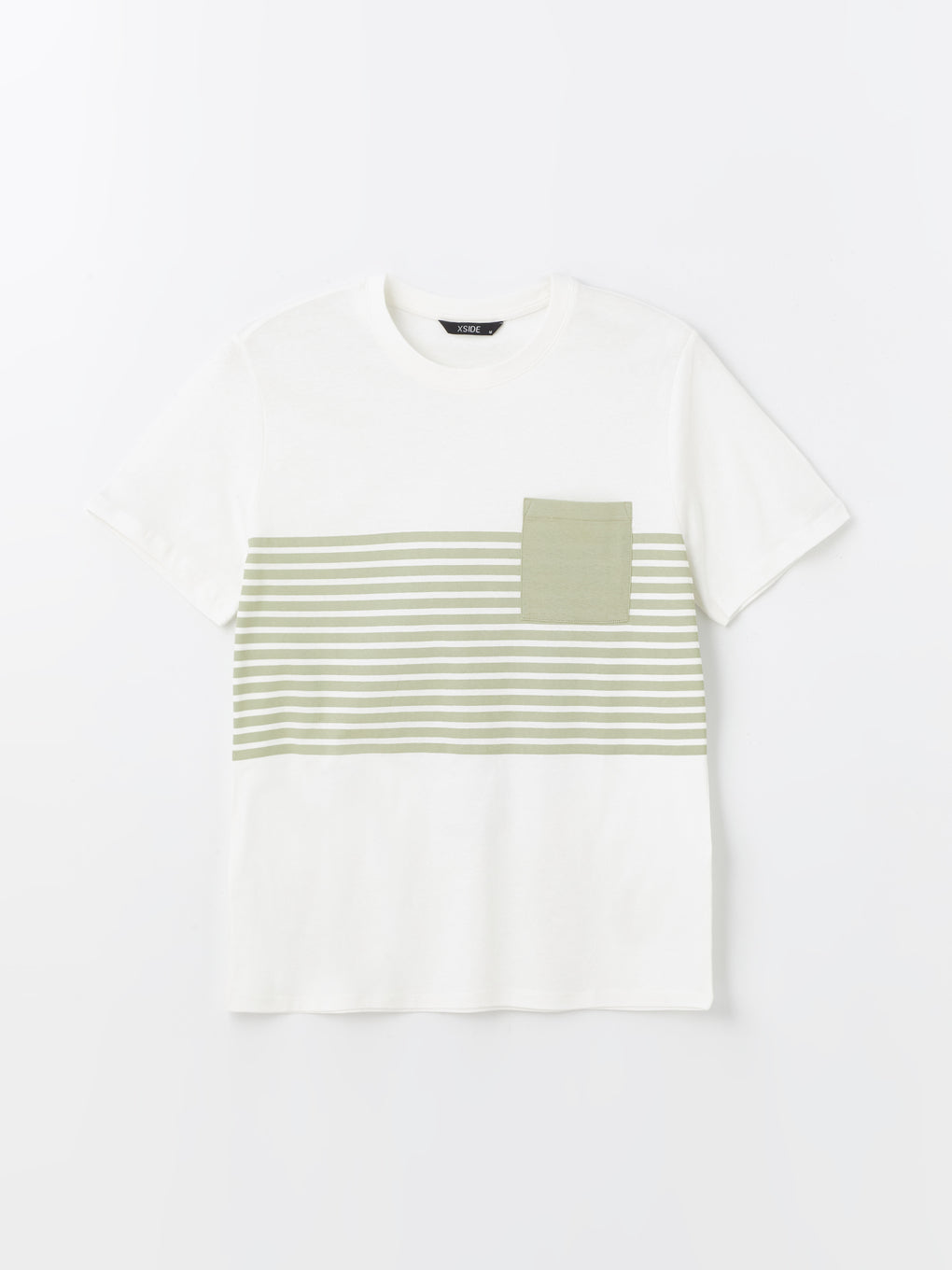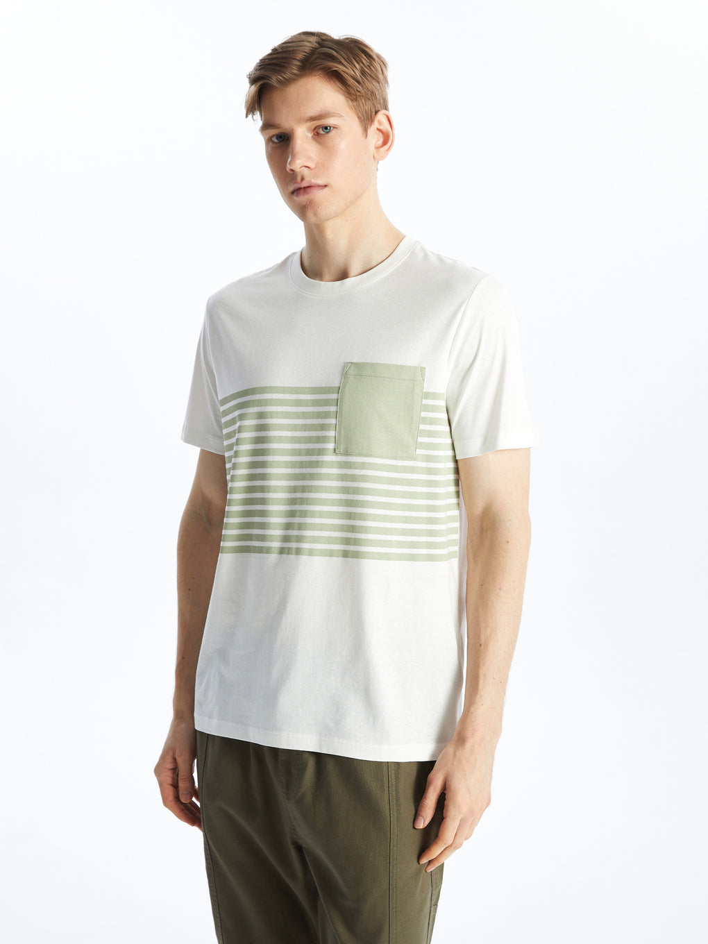 Crew Neck Short Sleeve Striped Combed Cotton Men's T-shirt