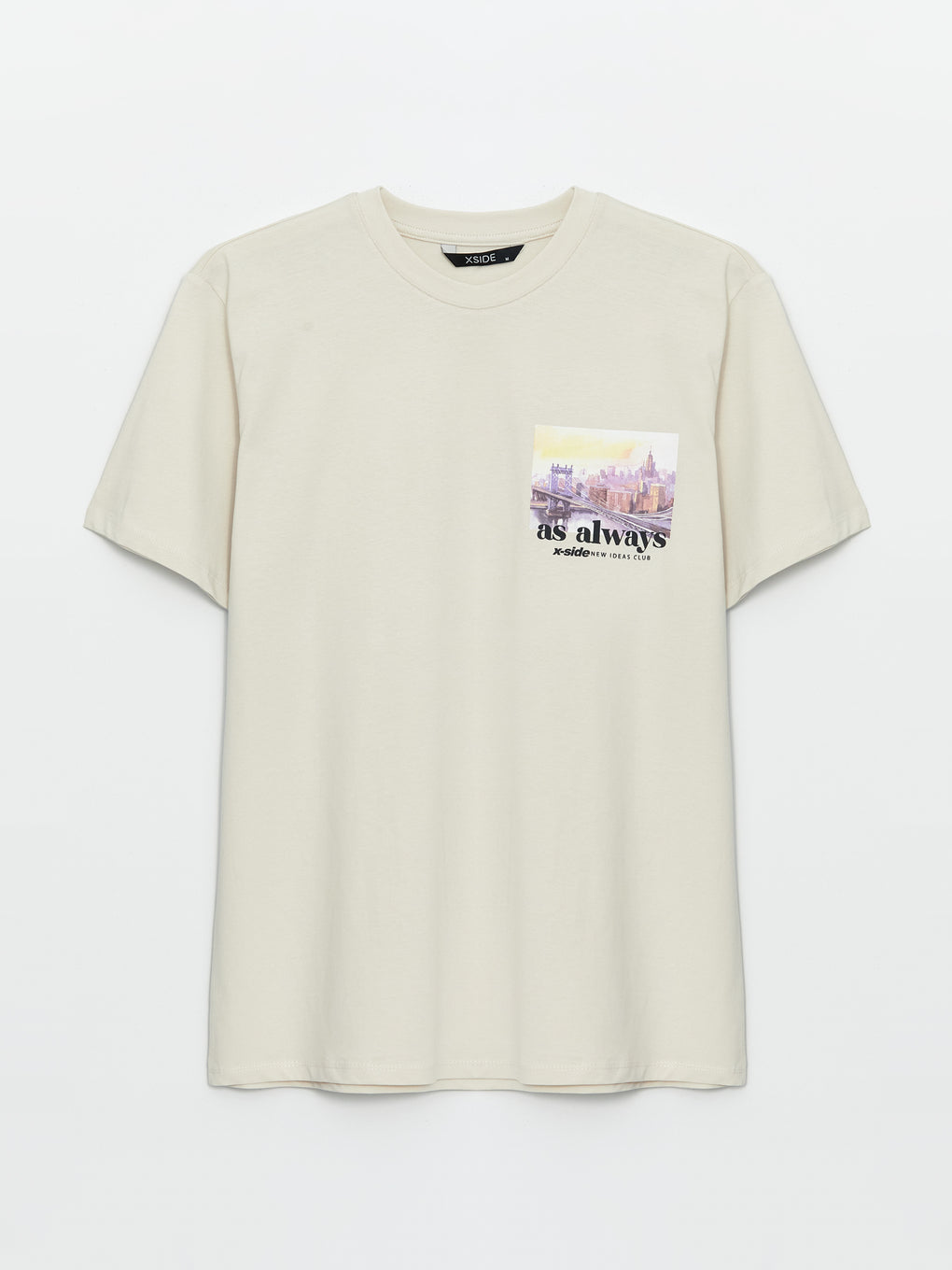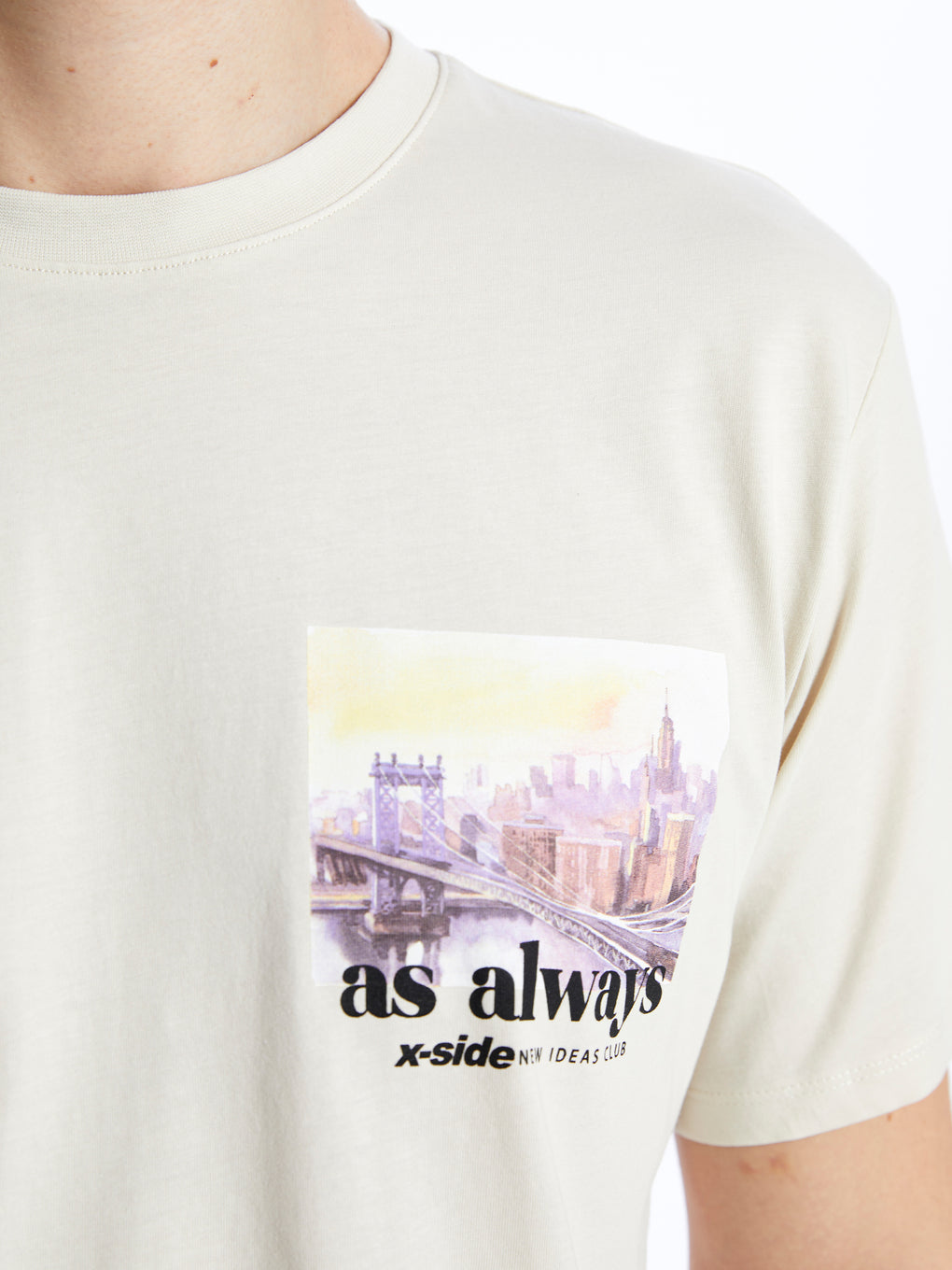 Crew Neck Short Sleeve Printed Combed Cotton Men's T-shirt