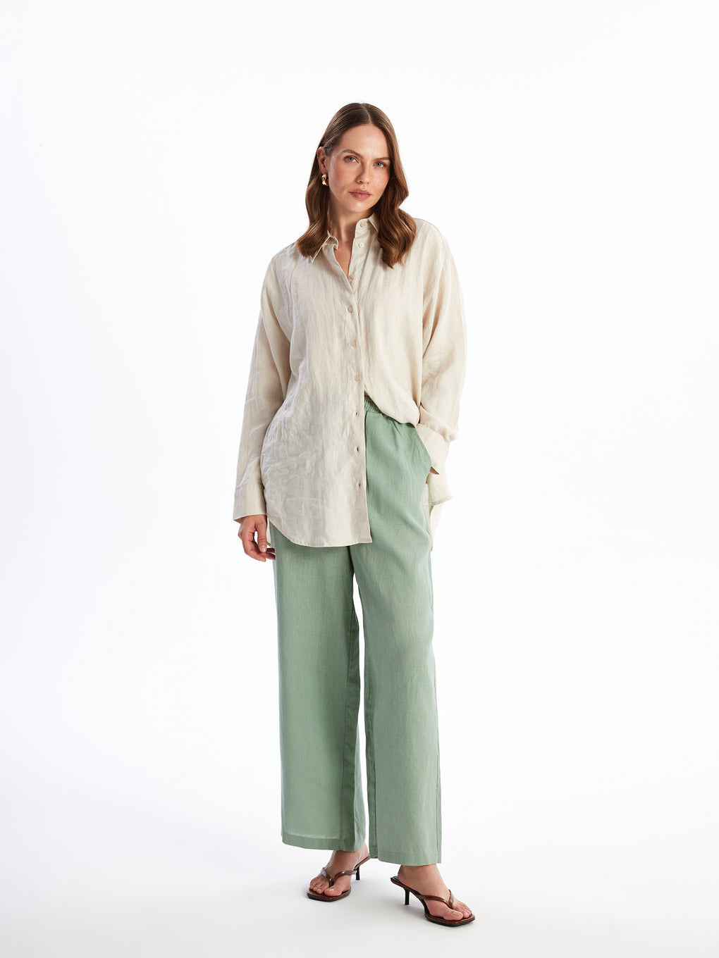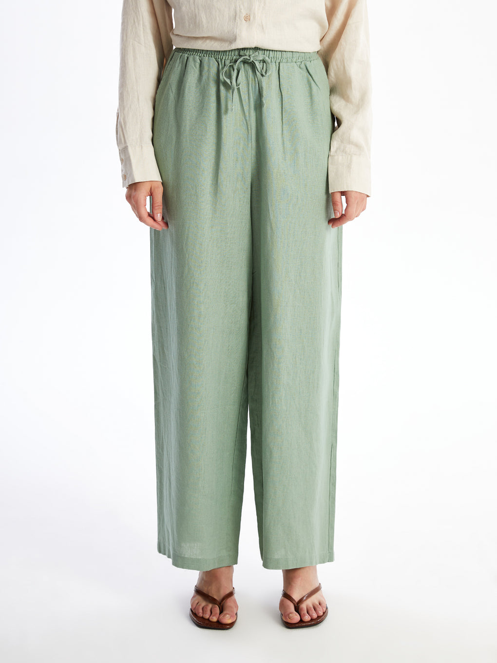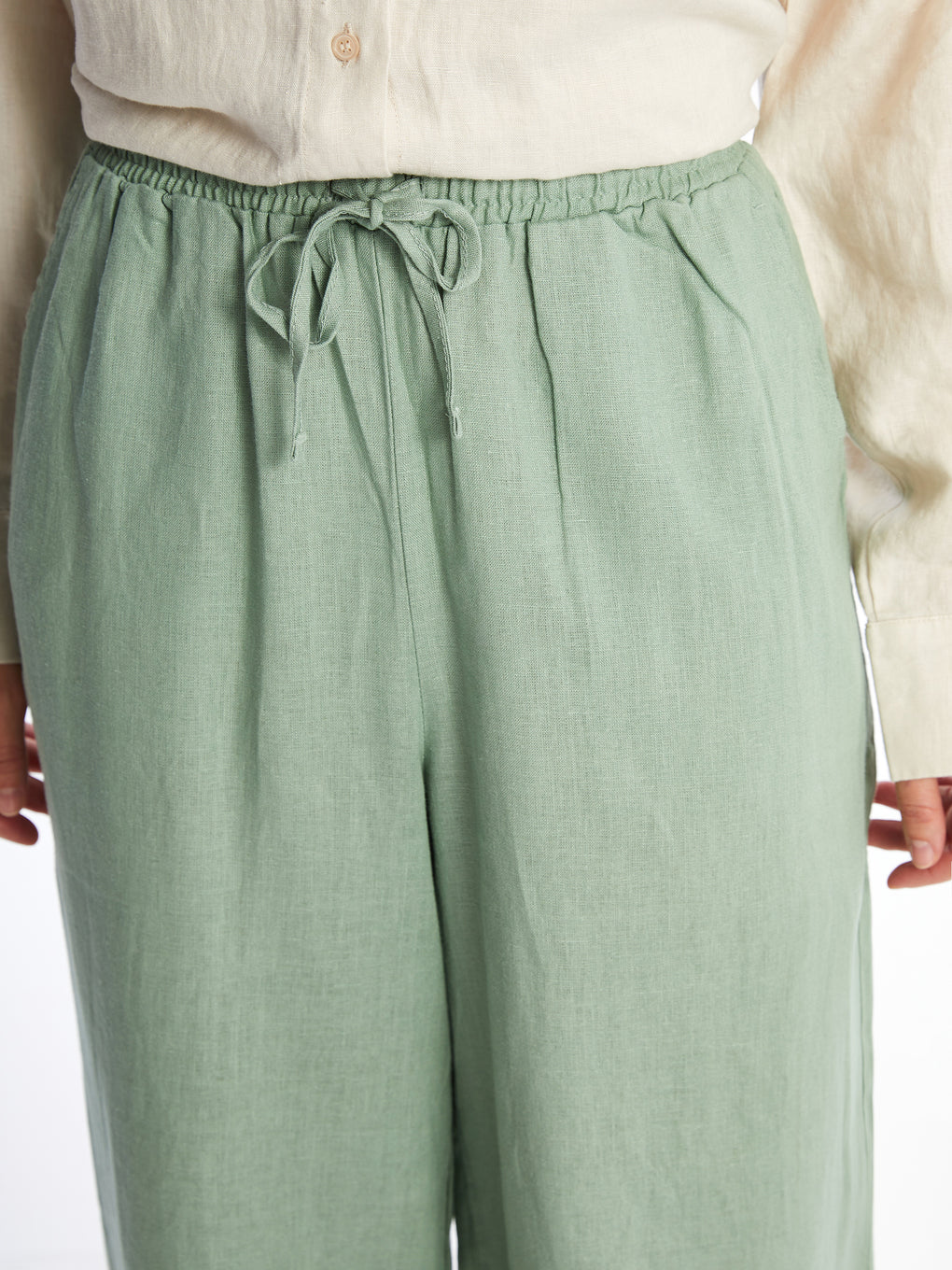 Elastic Waist Plain Wide Leg Linen Women's Pants