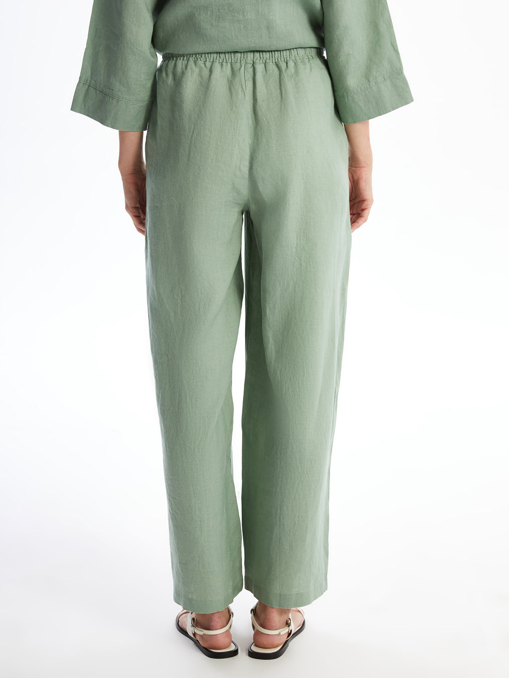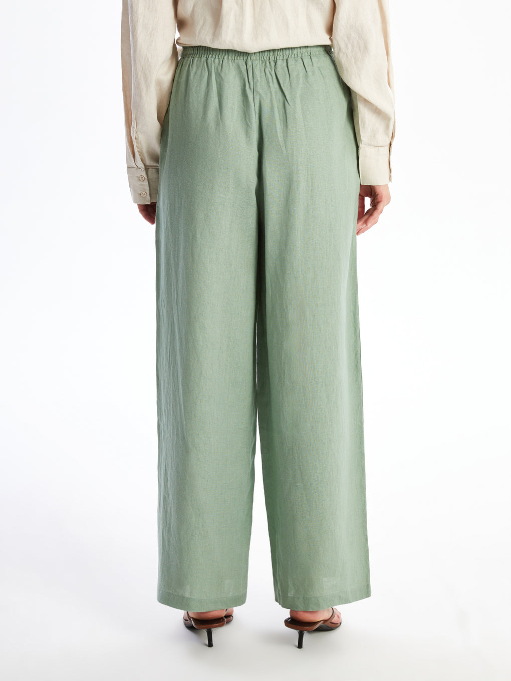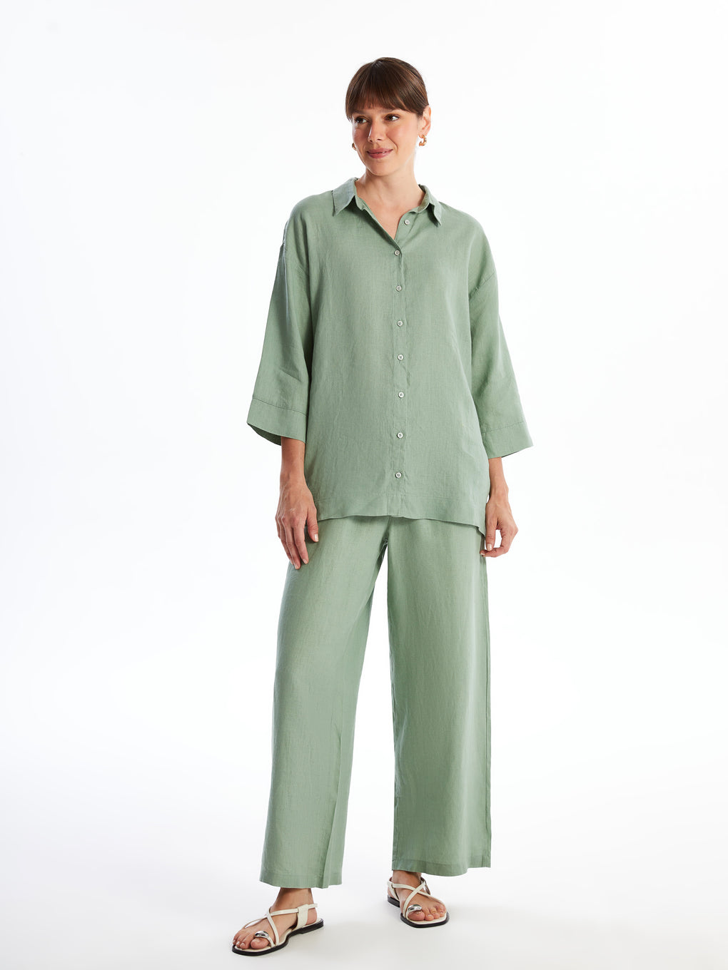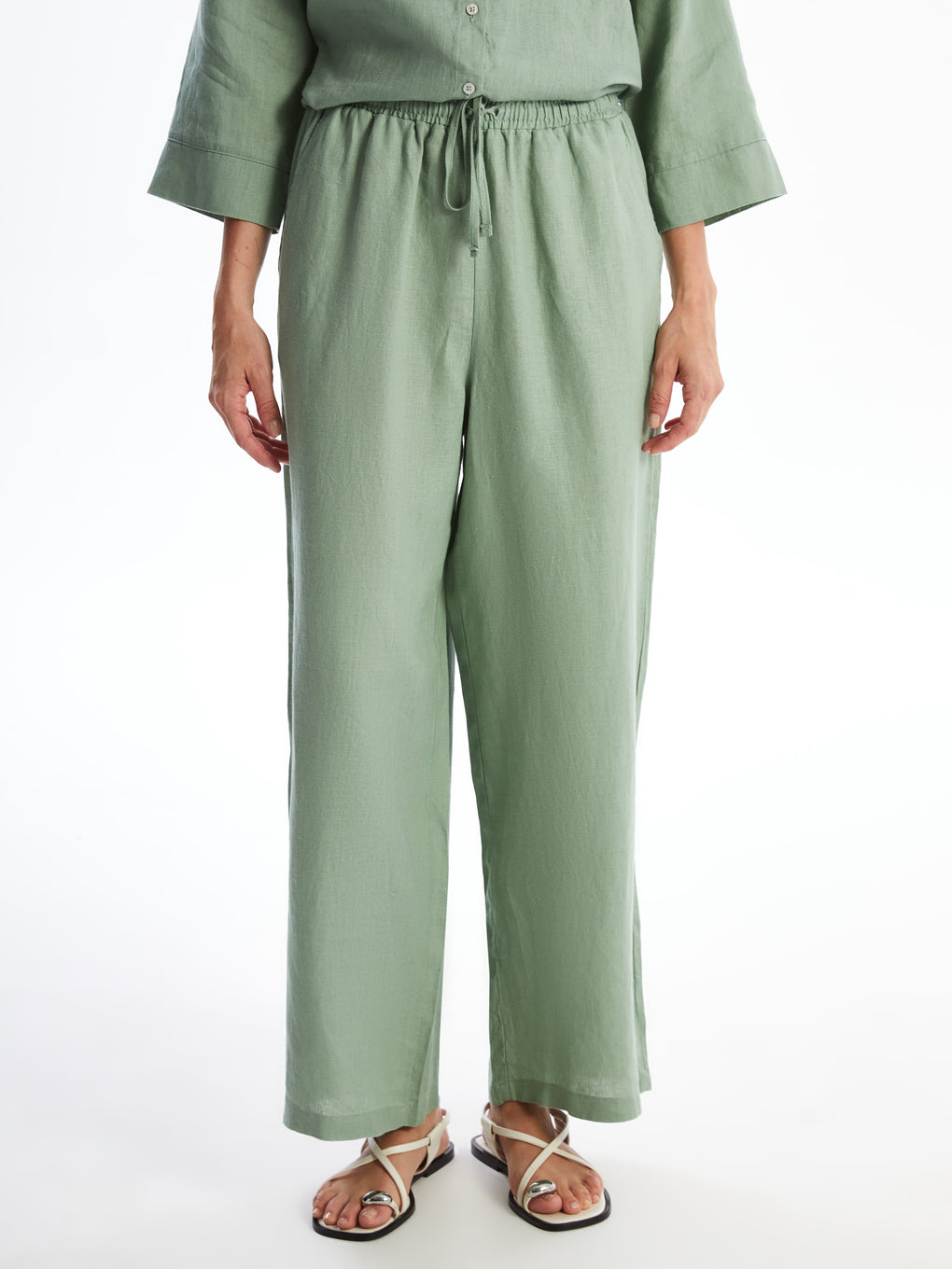 Elastic Waist Plain Wide Leg Linen Women's Pants