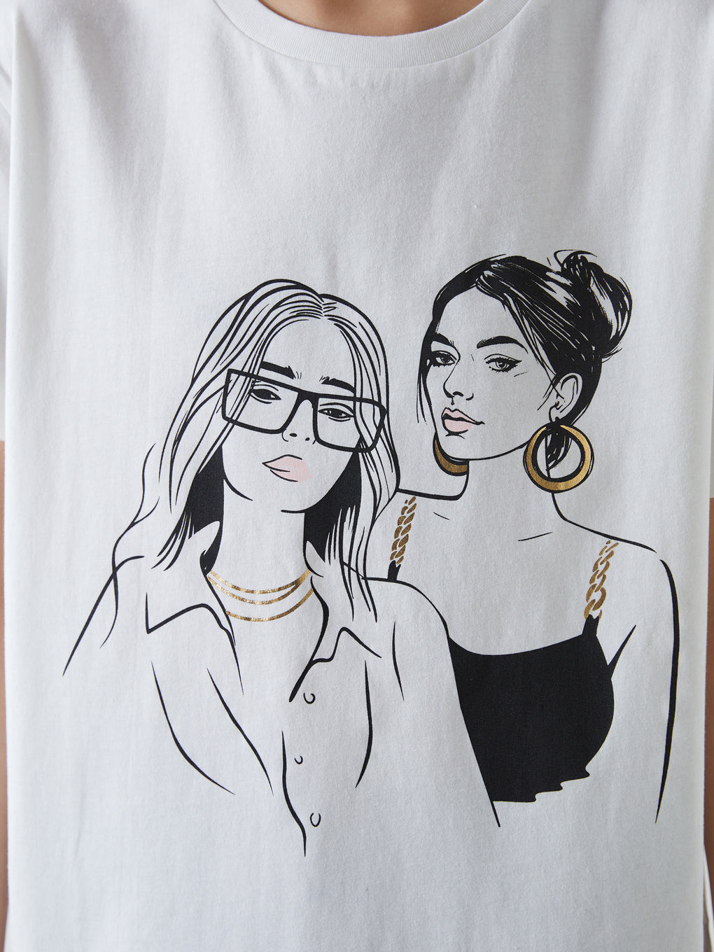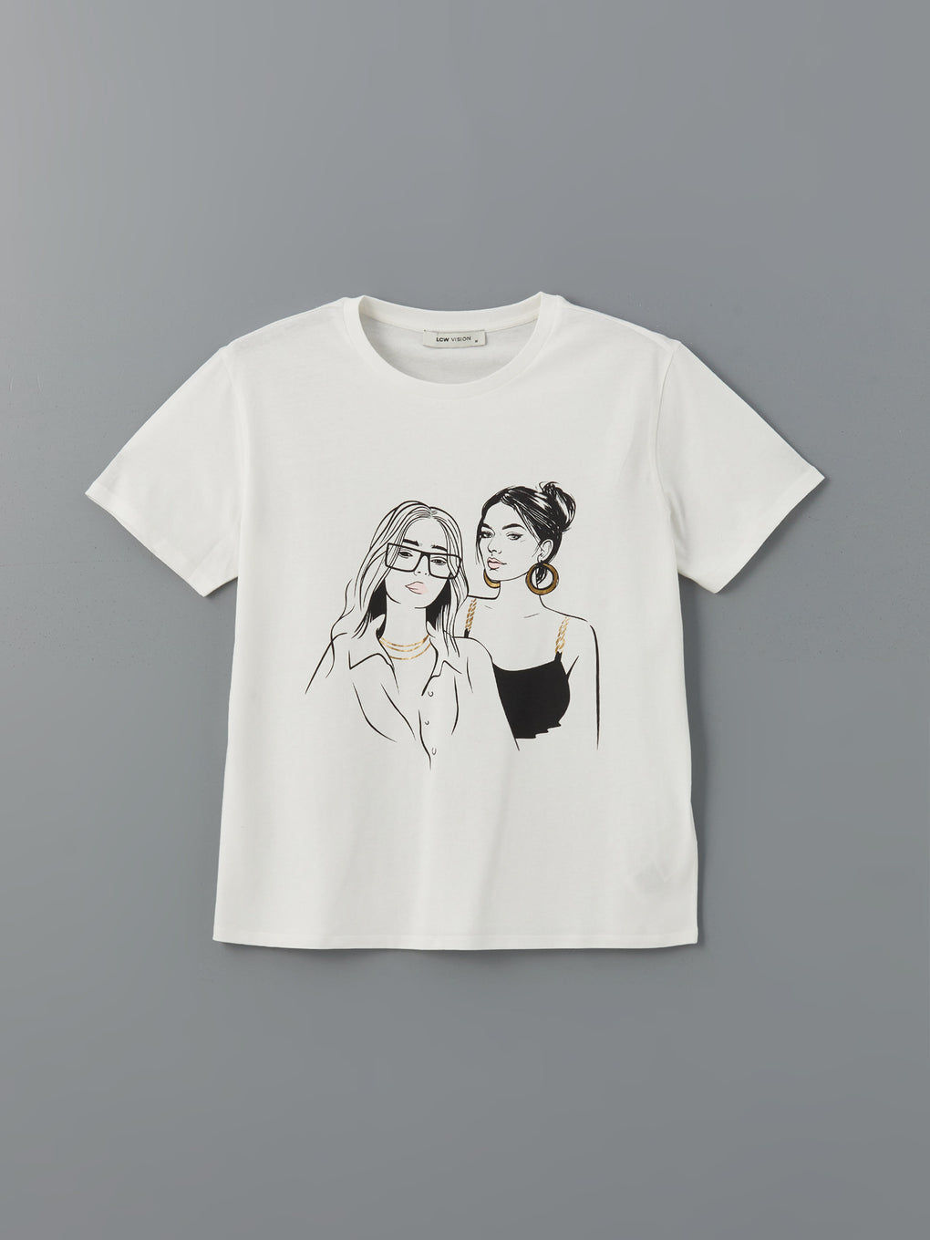 Crew Neck Printed Combed Cotton Women's T-Shirt