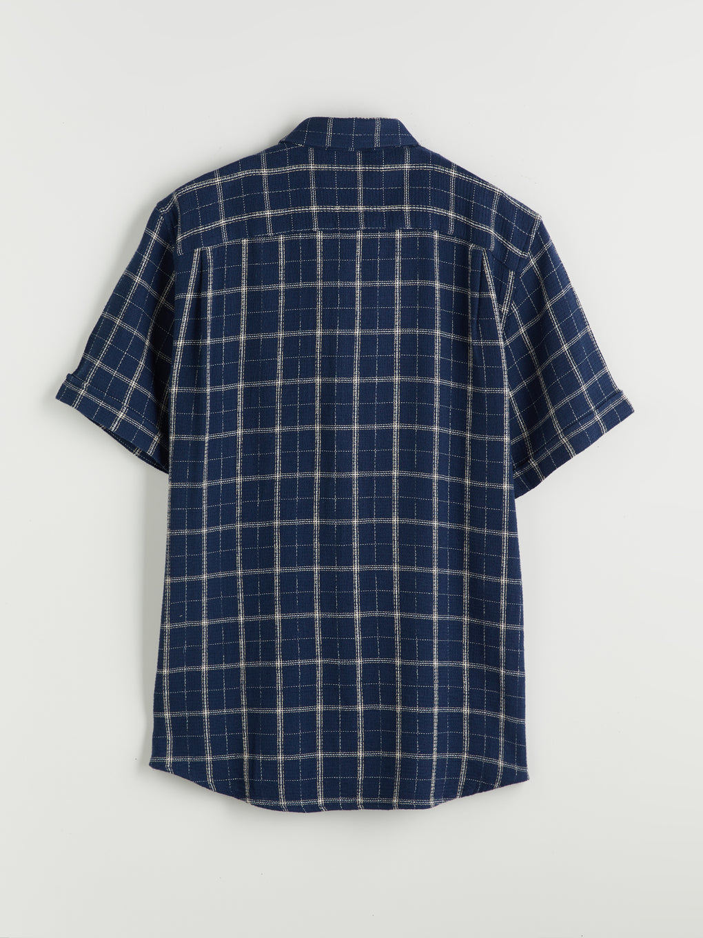 Regular Fit Short Sleeve Plaid Poplin Men's Shirt