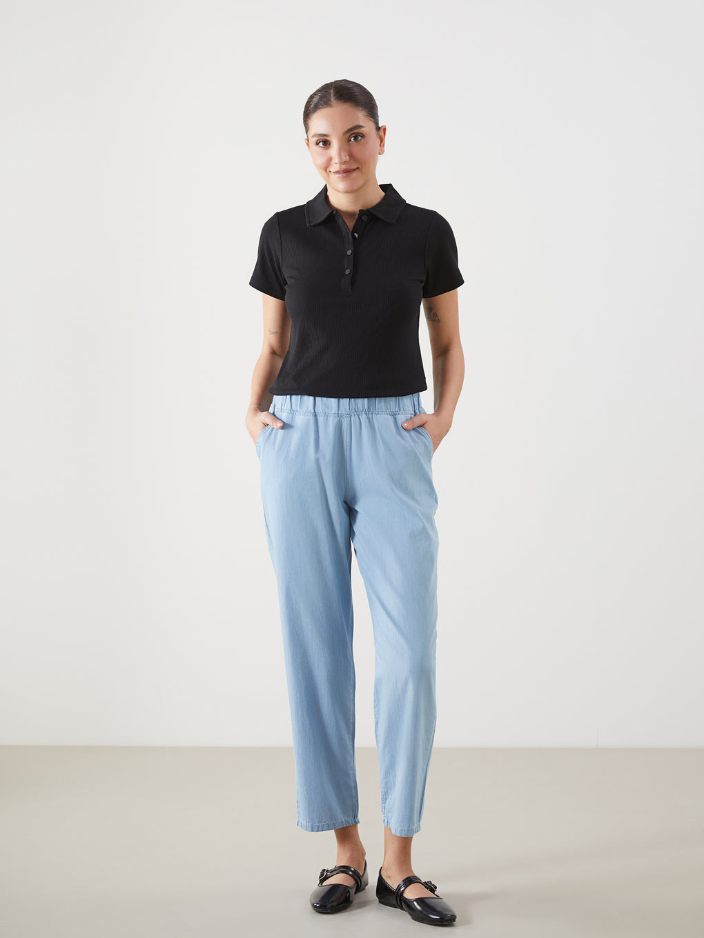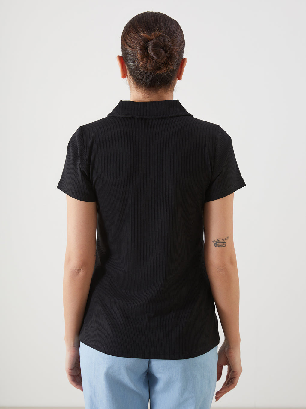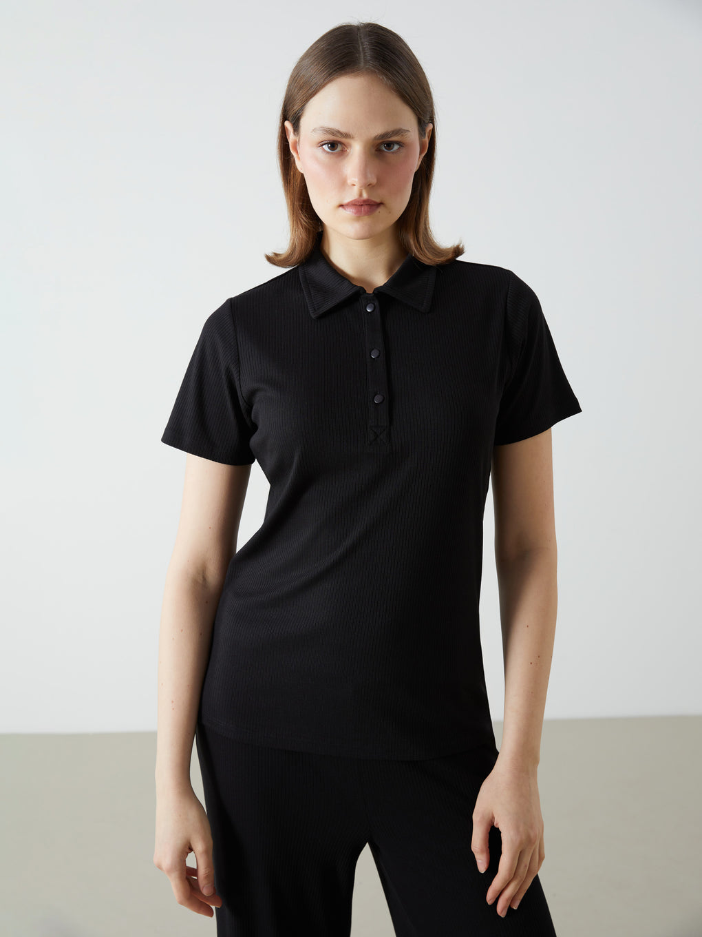 Polo Neck Textured Women'S T-Shirt