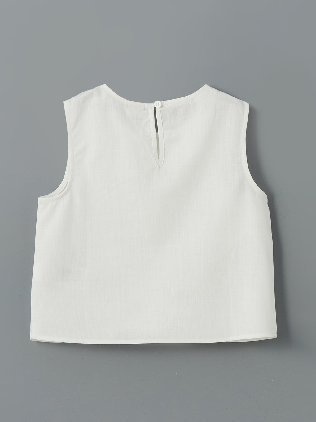 Crew Neck Plain Embroidered Poplin Girl Blouse