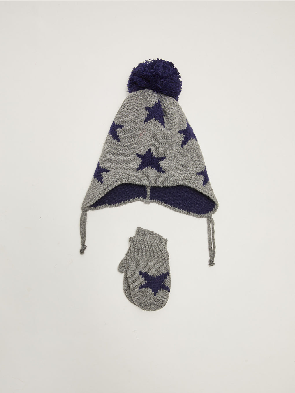 Patterned Baby Boy Knitwear Hat and Gloves 2-Pack Set