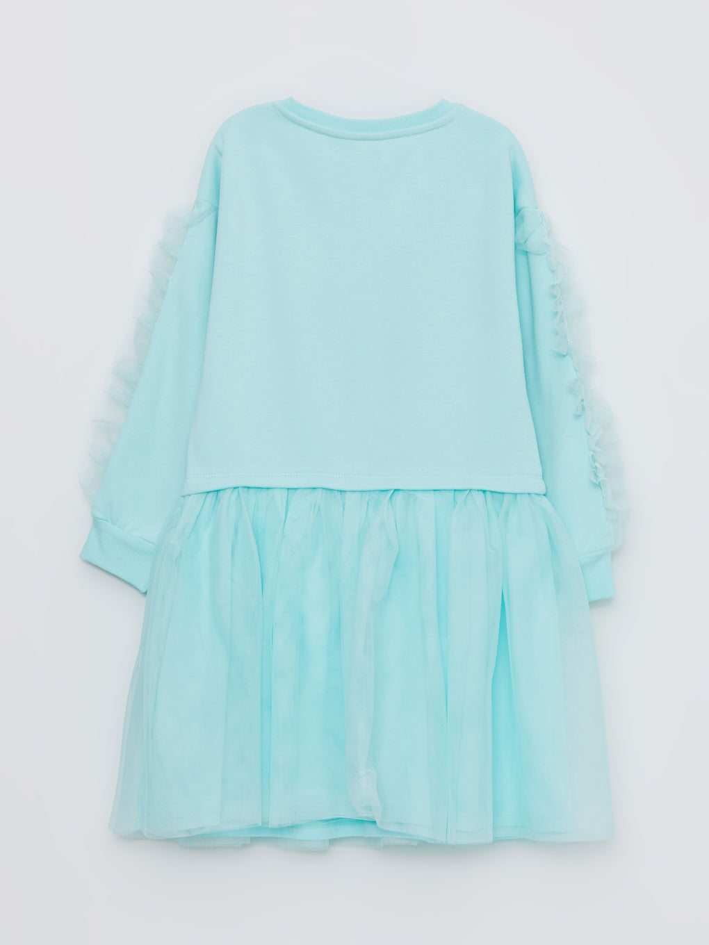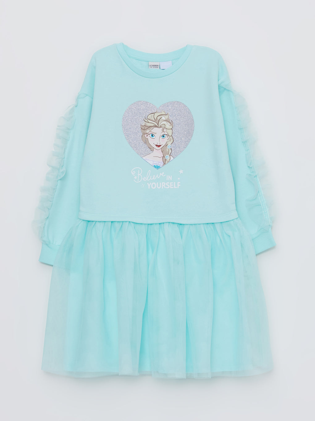 Crew Neck Elsa Printed Long Sleeve Girl Dress