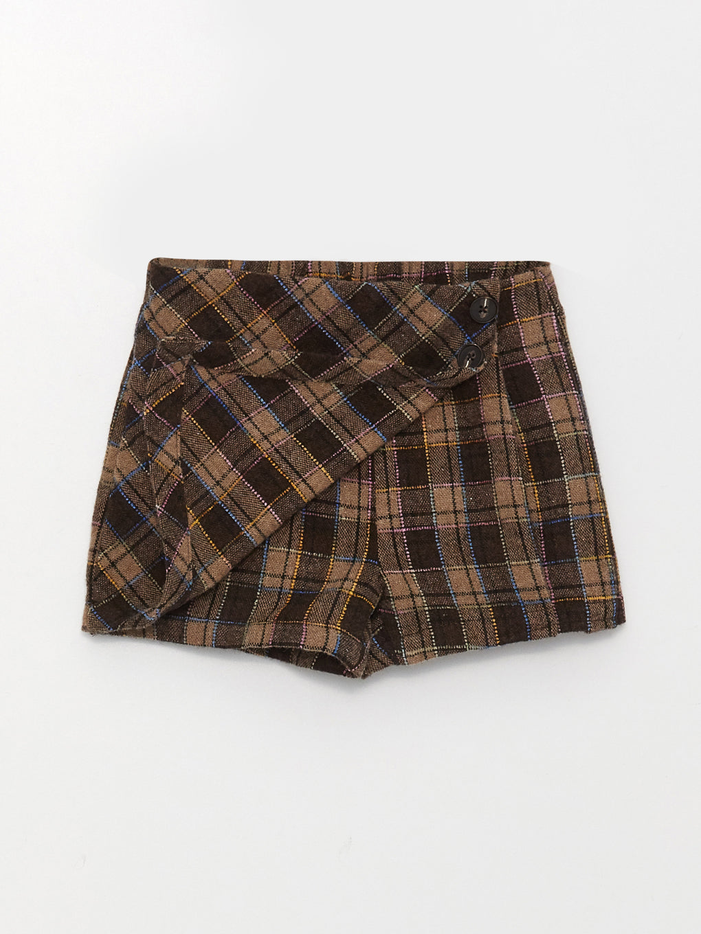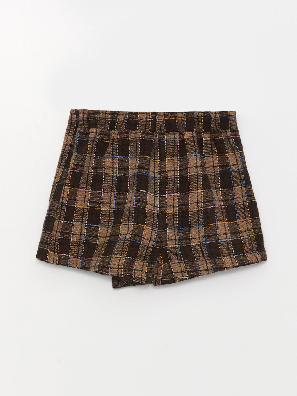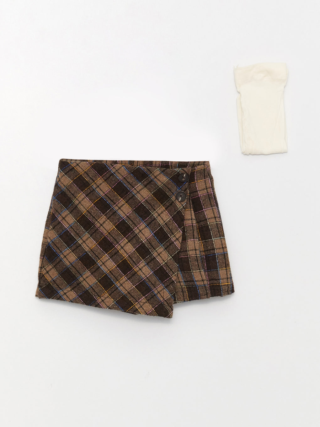 Elastic Waist Check Patterned Baby Girl Shorts Skirt and Pantyhose 2-Pack Set