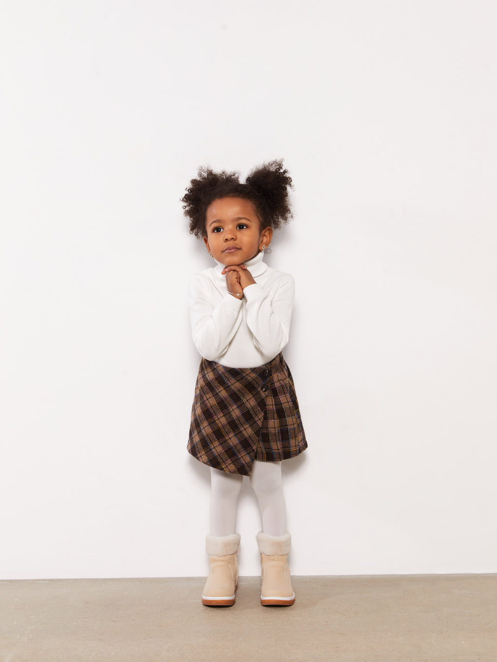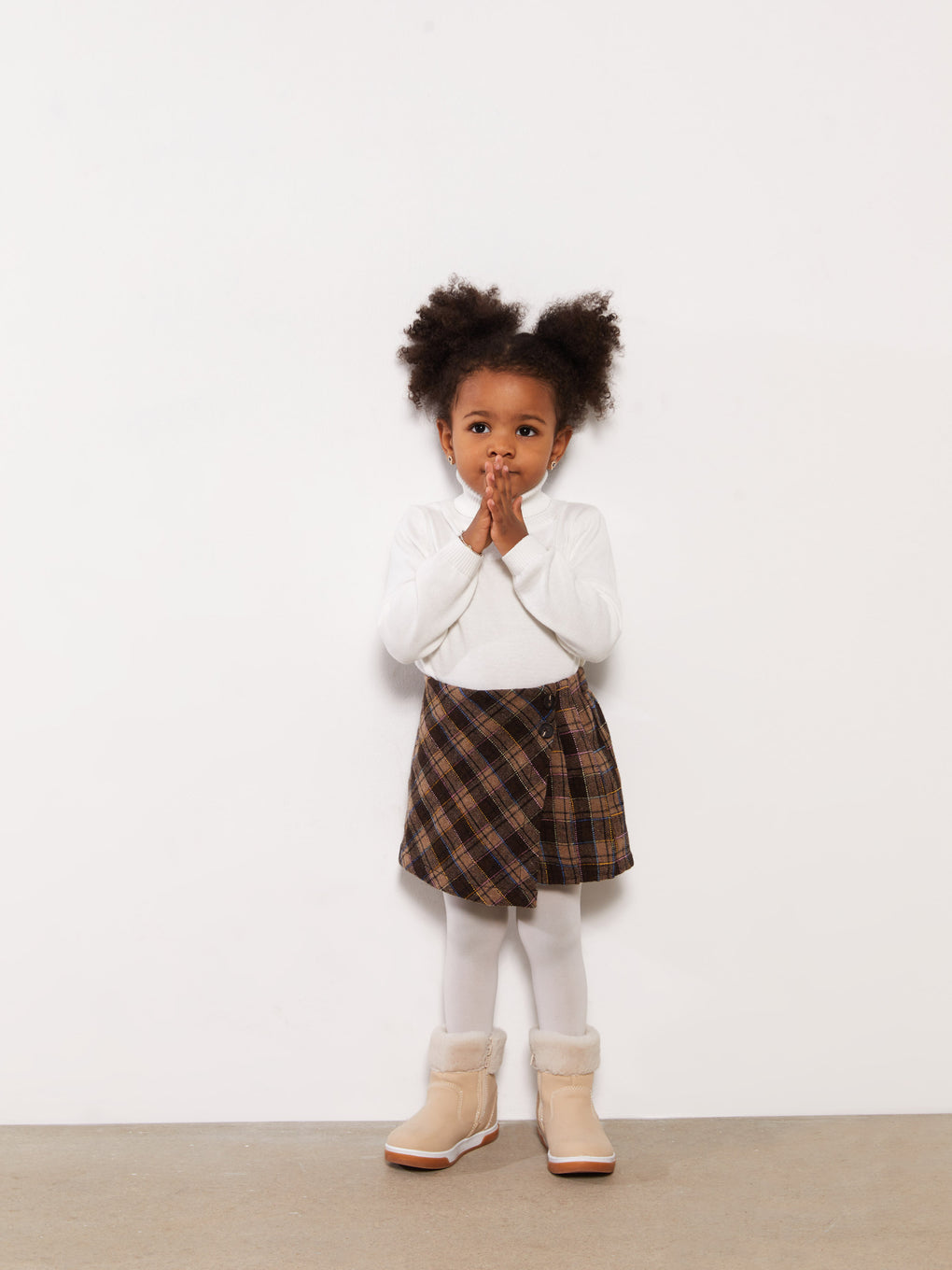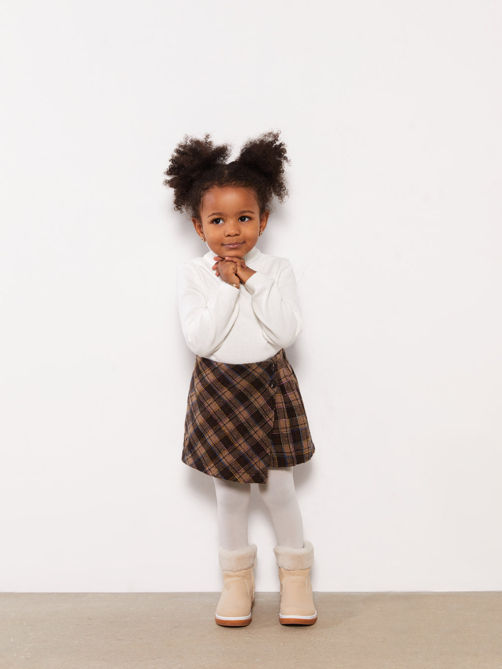 Elastic Waist Check Patterned Baby Girl Shorts Skirt and Pantyhose 2-Pack Set