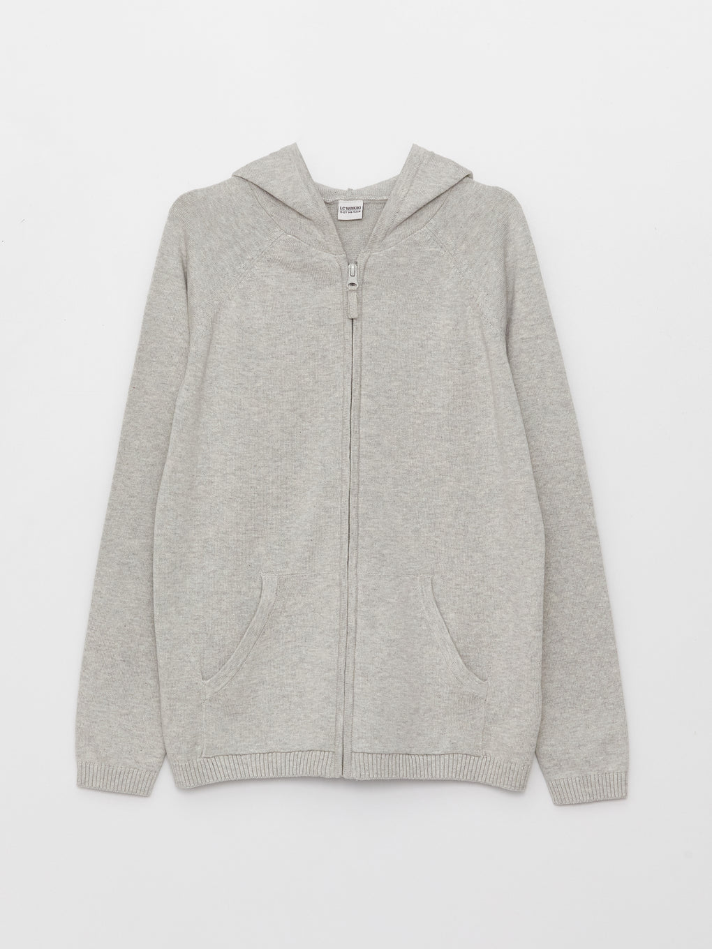 Hooded Basic Long Sleeve Girls Knitwear Cardigan