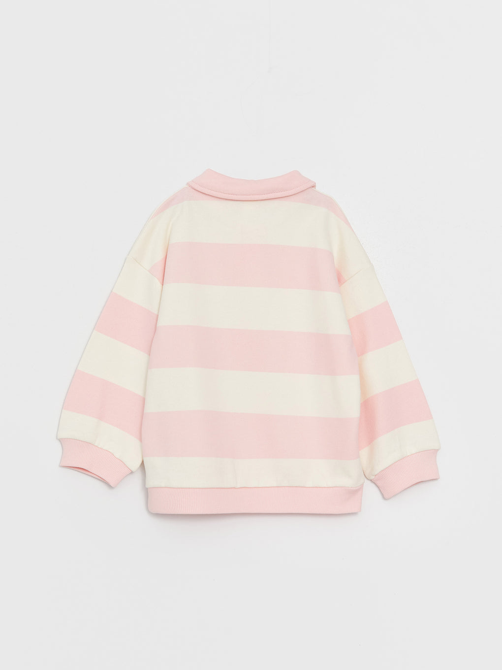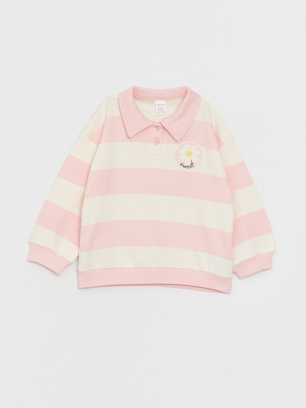 Polo Neck Long Sleeve Striped Baby Girl Sweatshirt