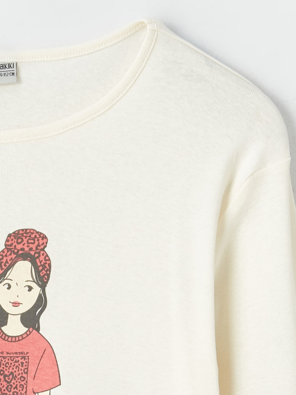 Crew Neck Printed Long Sleeve Girl T-shirt