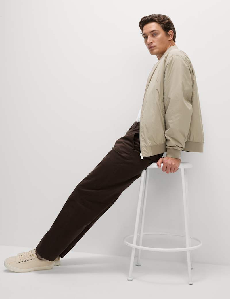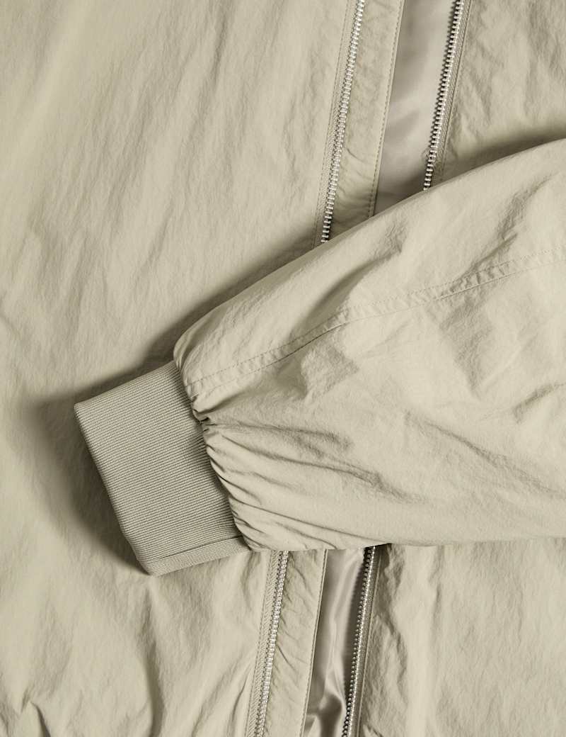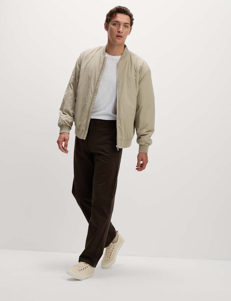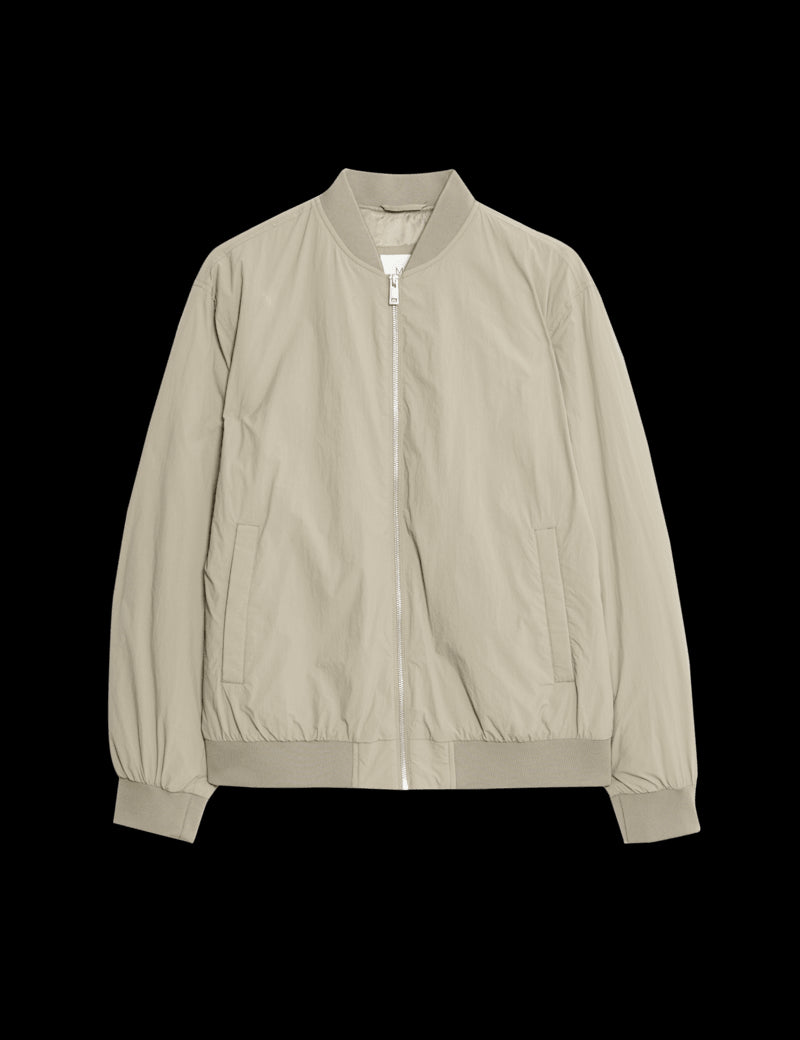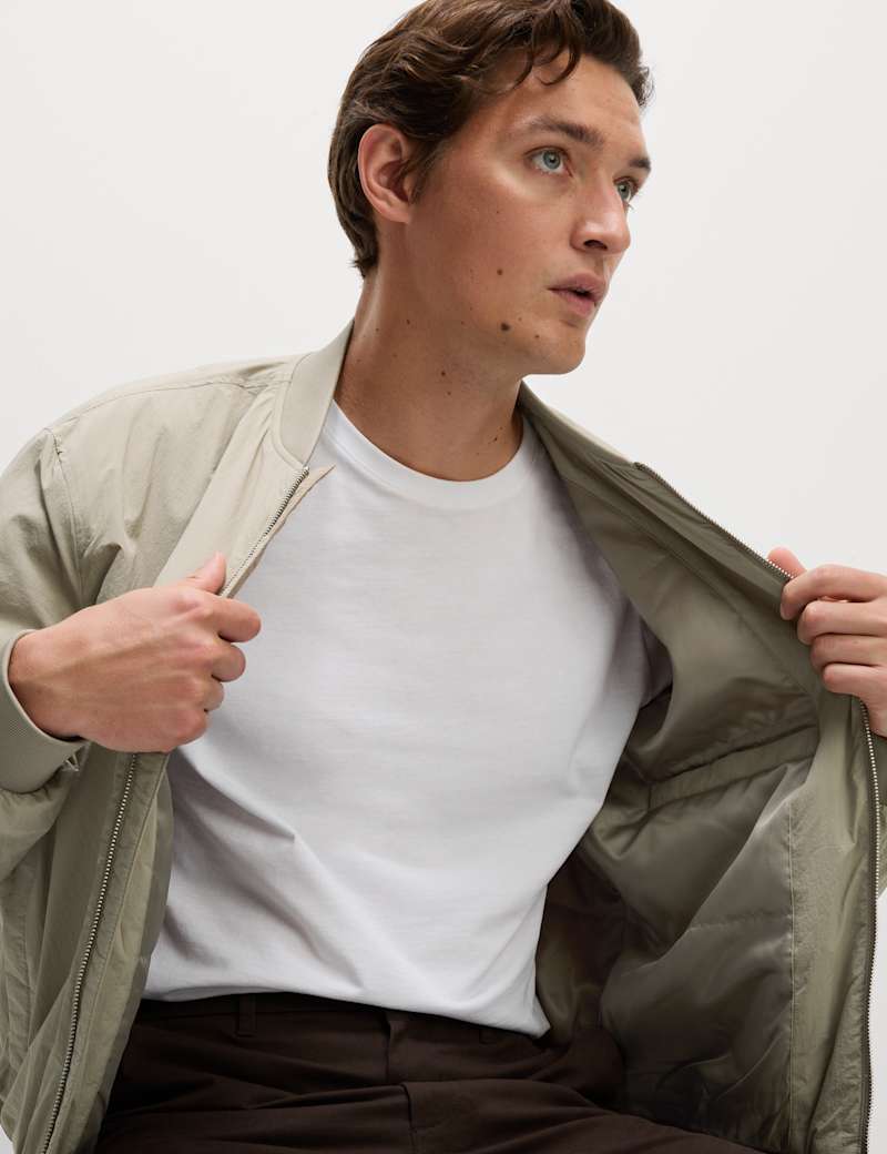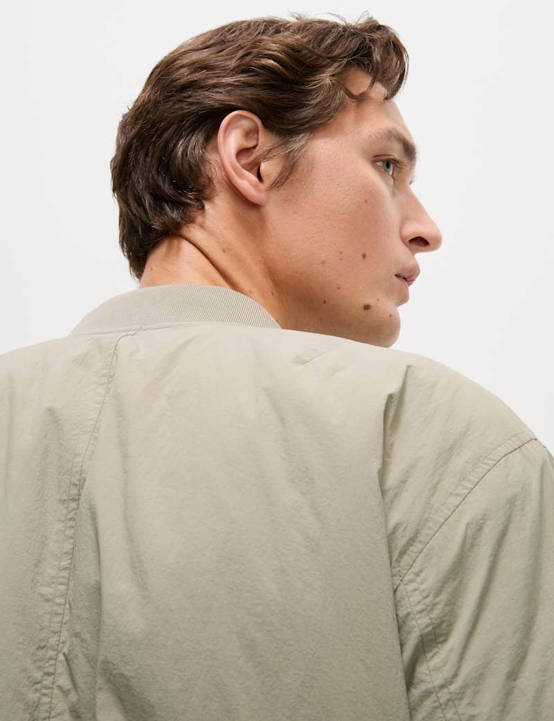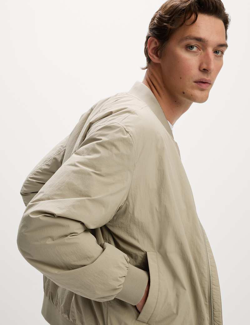 With its light padding, this zip-up bomber jacket is a perfect choice for cooler days. It's made to a roomy relaxed fit from lightweight technical fabric. A baseball neck and ribbing at the hem and cuffs lend a sporty touch, while two external pockets and an internal pocket keep your essentials handy.