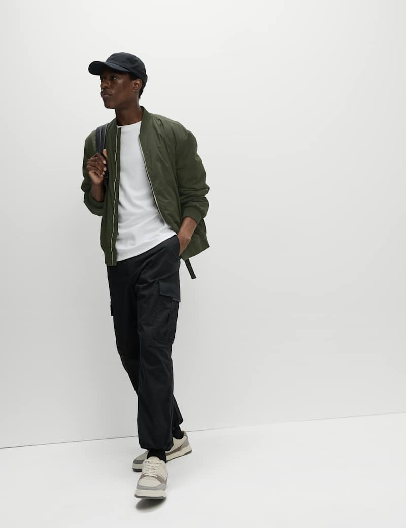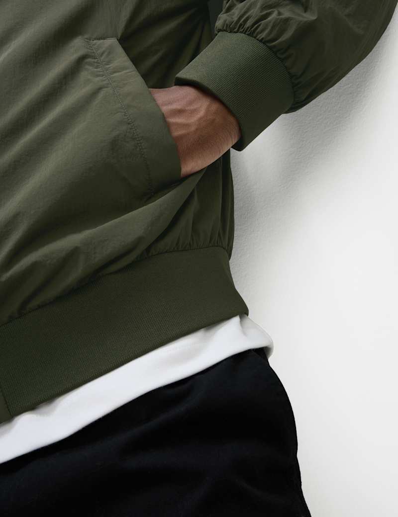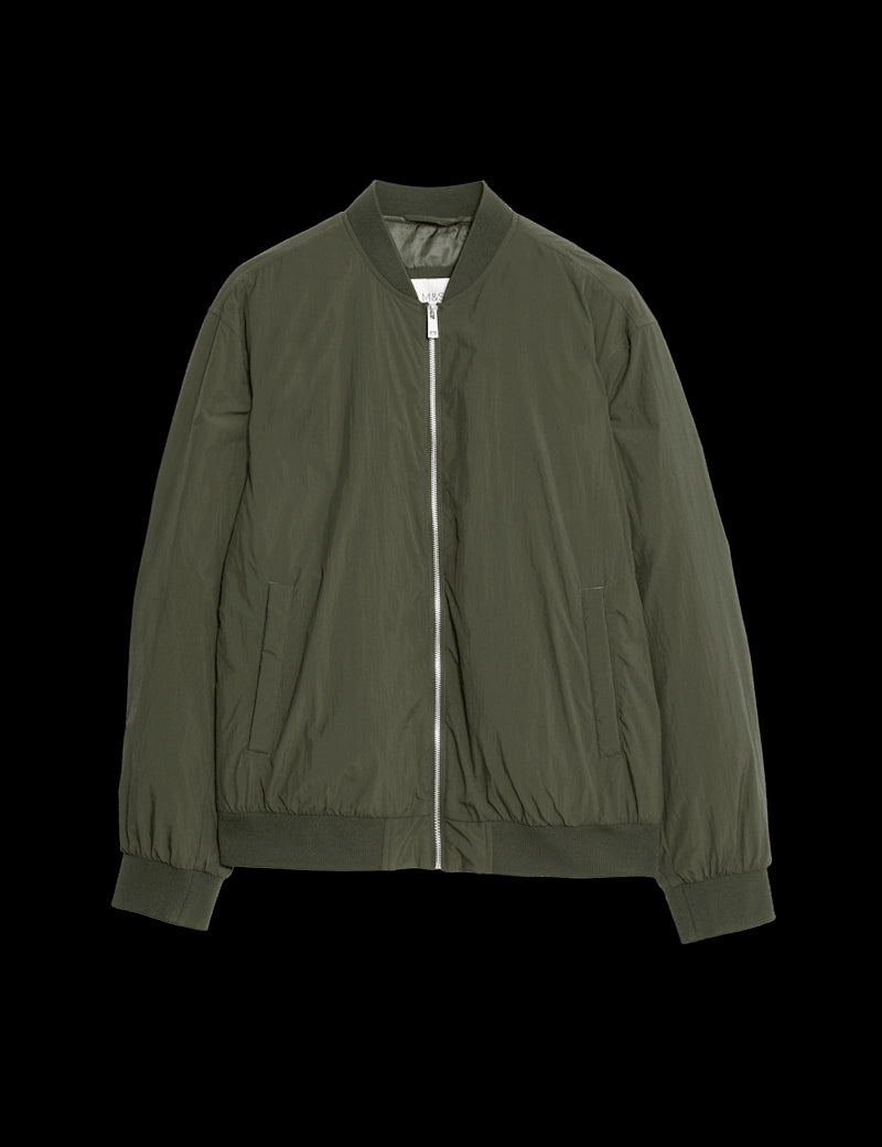 With its light padding, this zip-up bomber jacket is a perfect choice for cooler days. It's made to a roomy relaxed fit from lightweight technical fabric. A baseball neck and ribbing at the hem and cuffs lend a sporty touch, while two external pockets and an internal pocket keep your essentials handy.