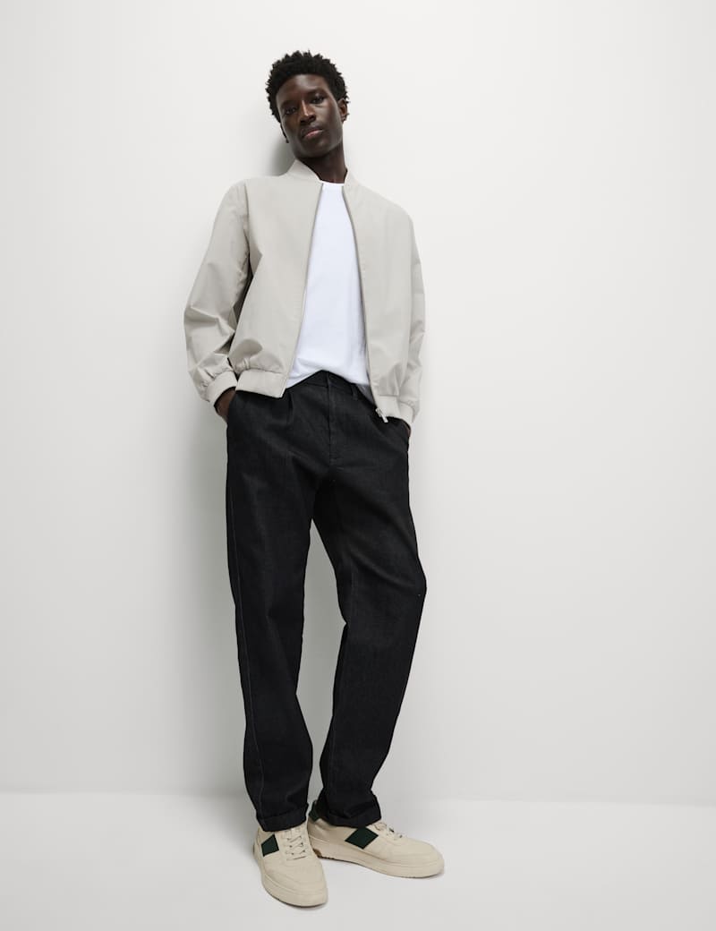 The understated design of this classic baseball neck bomber jacket makes it the perfect choice for casual days. It's cut to a roomy regular fit to make layering up easy and it's lined for extra comfort. The polished metal zip fastens securely against the elements, and our water-repellent Stormwear™ finish keeps you dry during light rain showers. The stretchy ribbed trims are super-snug, too. Two concealed snap pockets store your personal items safely.