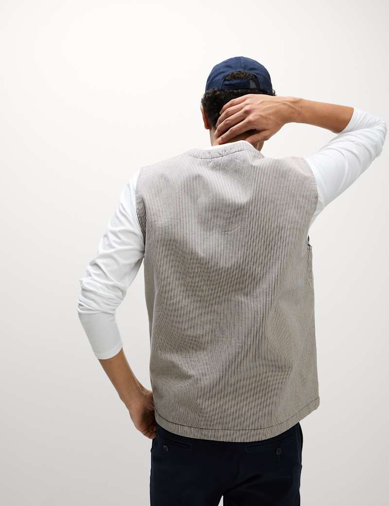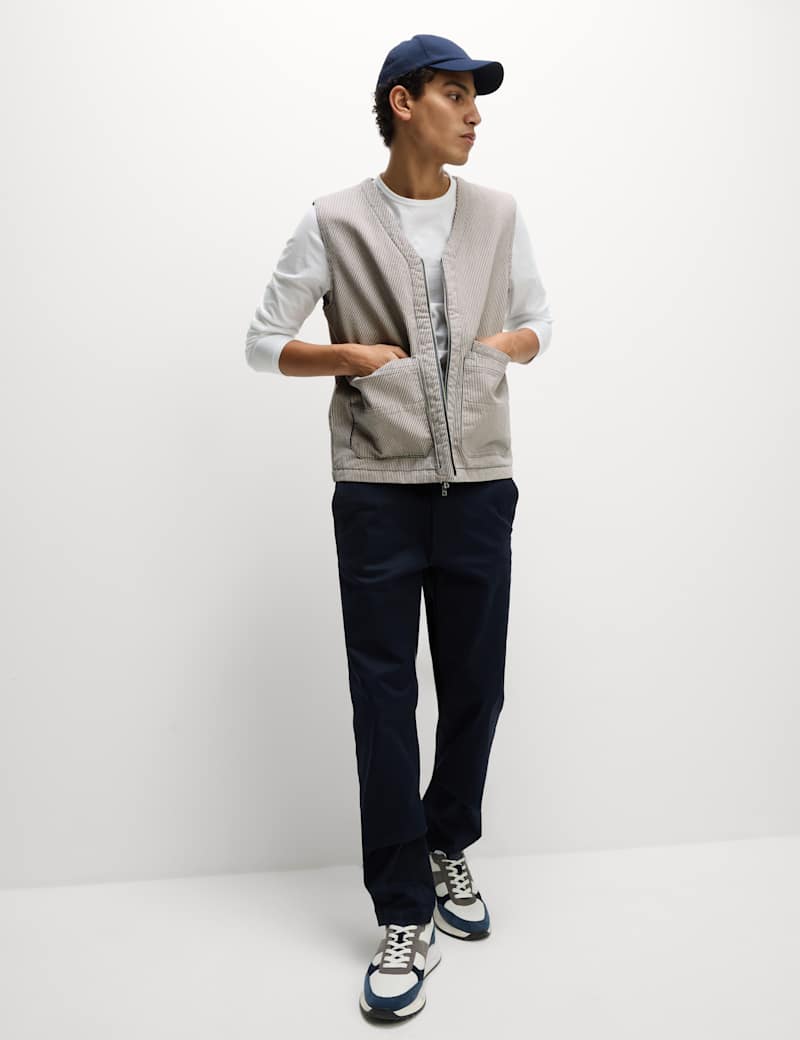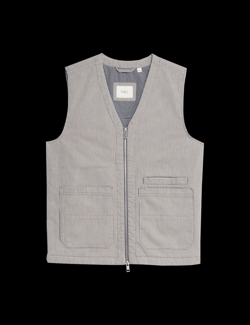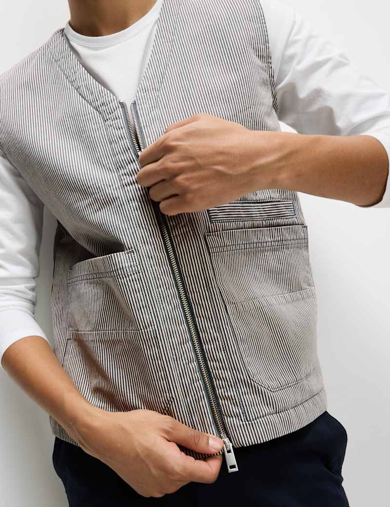 Stay super-snug snug with this durable cotton-rich v-neck canvas gilet. It's made in a regular fit for easy layering. Light padding provides warmth and the smooth lining ensures extra comfort. The polished metal zip-through fastening helps keep the cold and damp out. Two handy patch pockets at the waist are perfect for warming hands and holding small personal items.