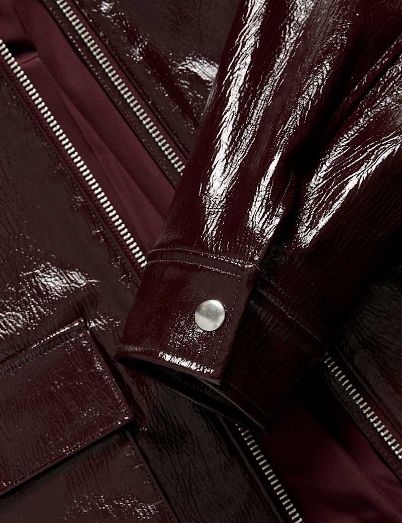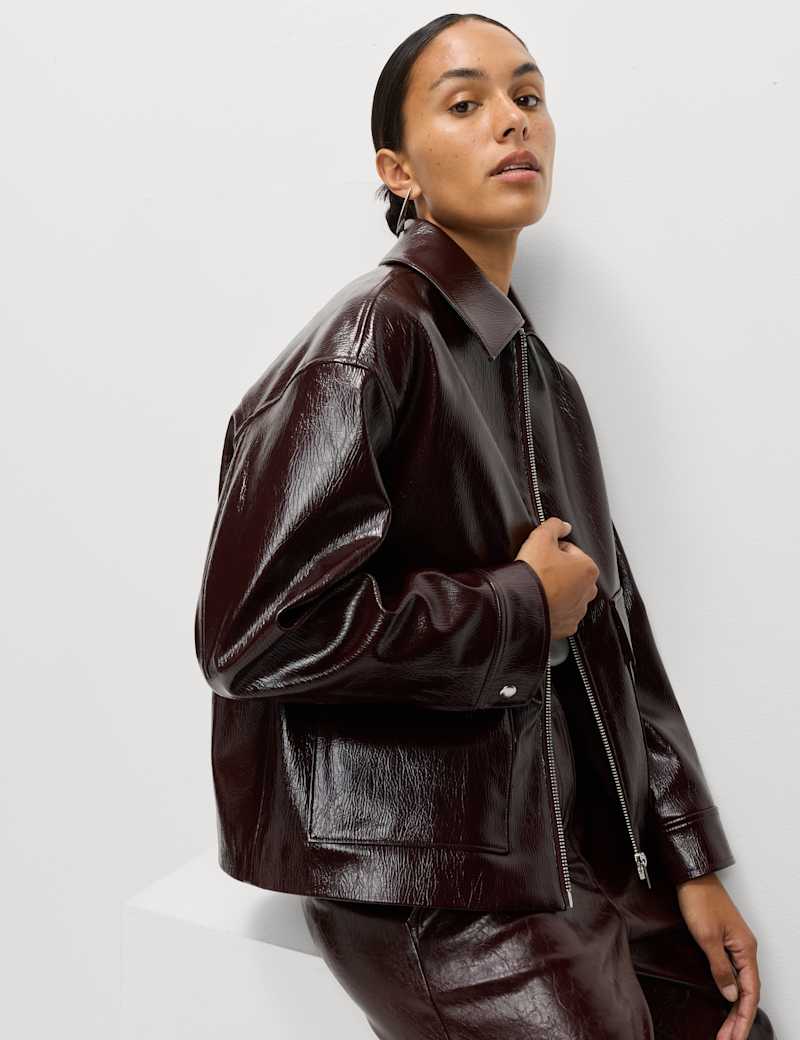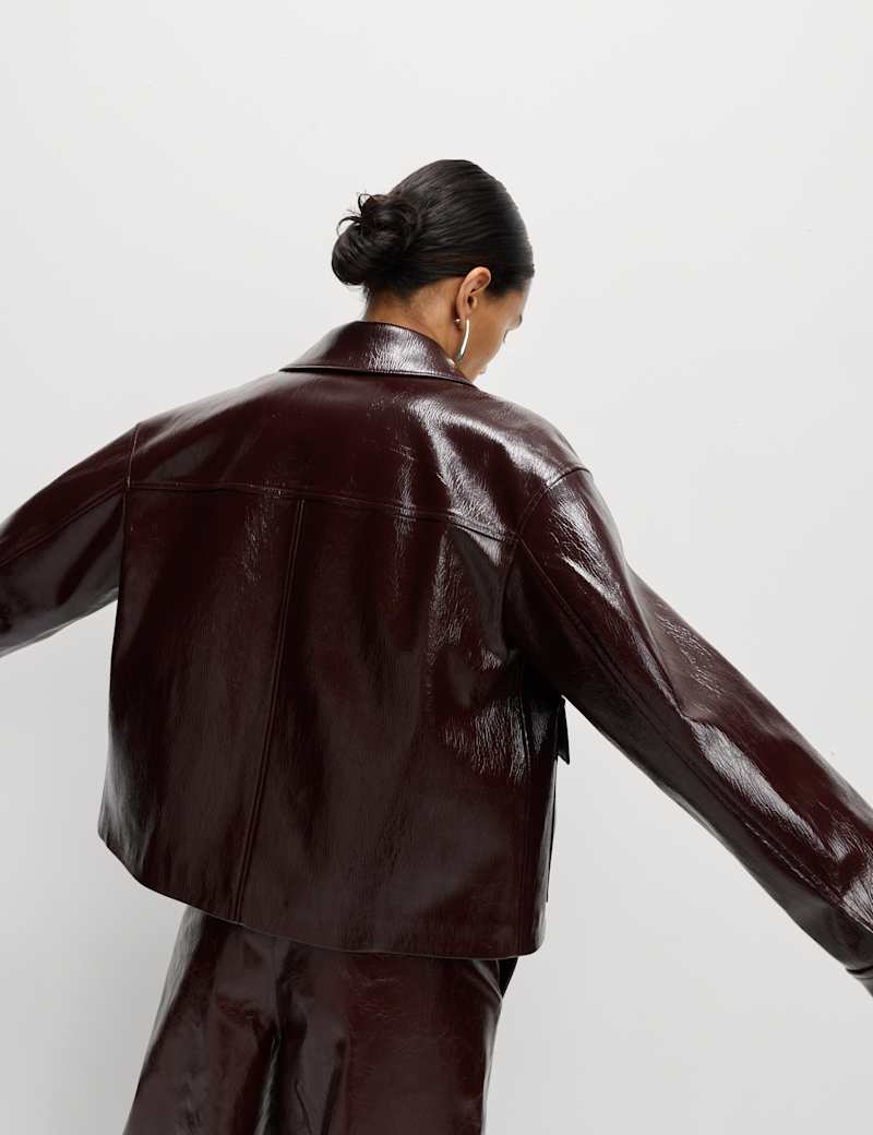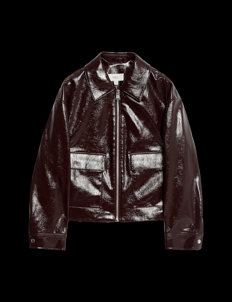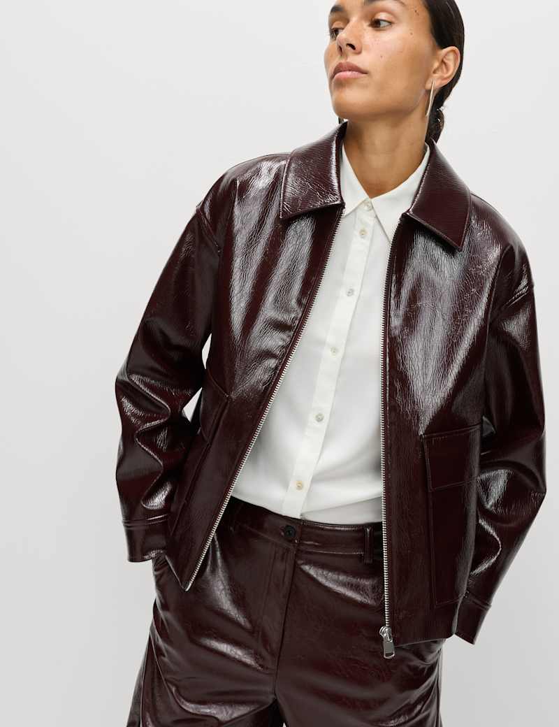Faux Leather Lacquered Harrington Jacket