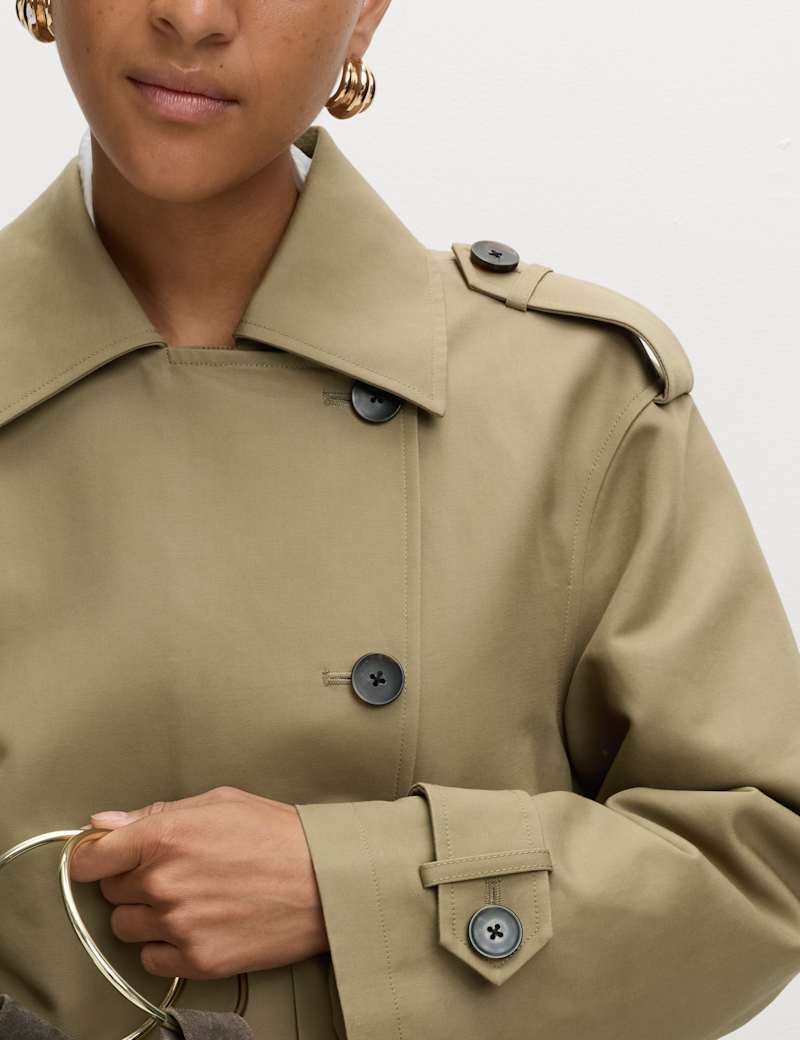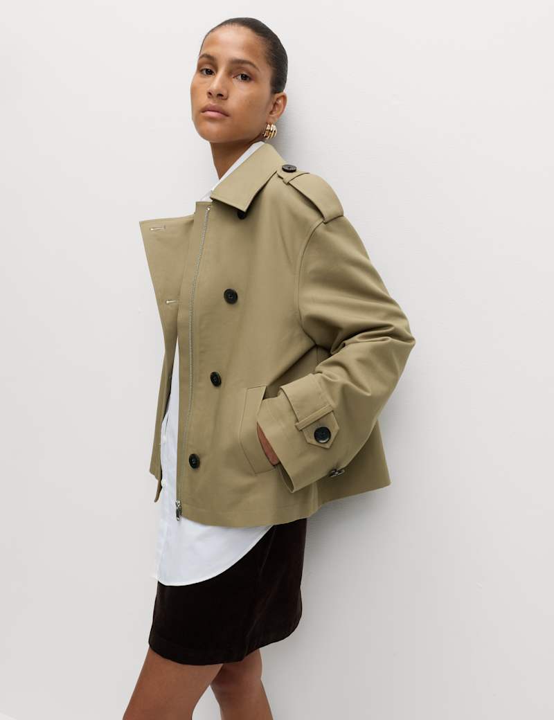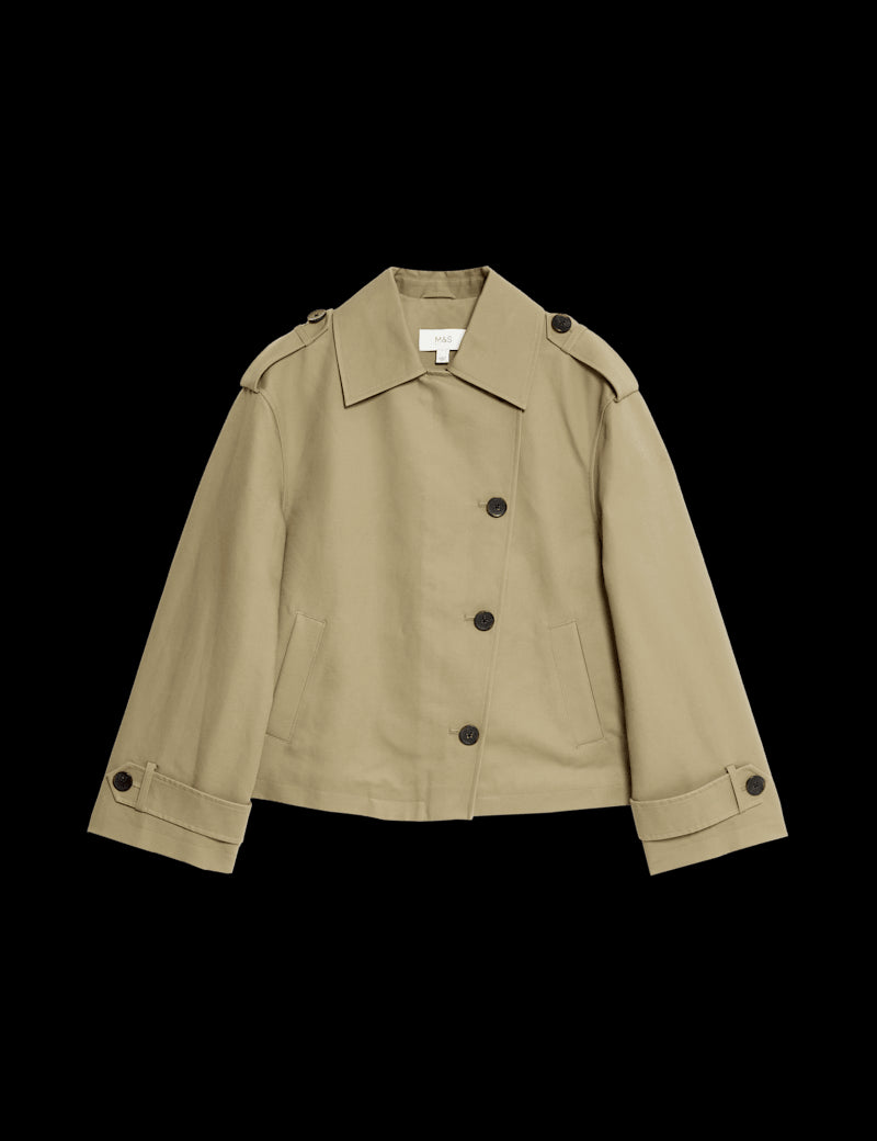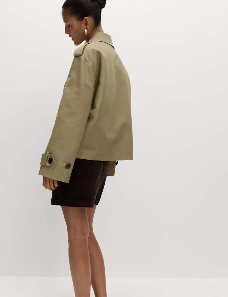 Cotton Rich Asymmetric Short Trench Coat