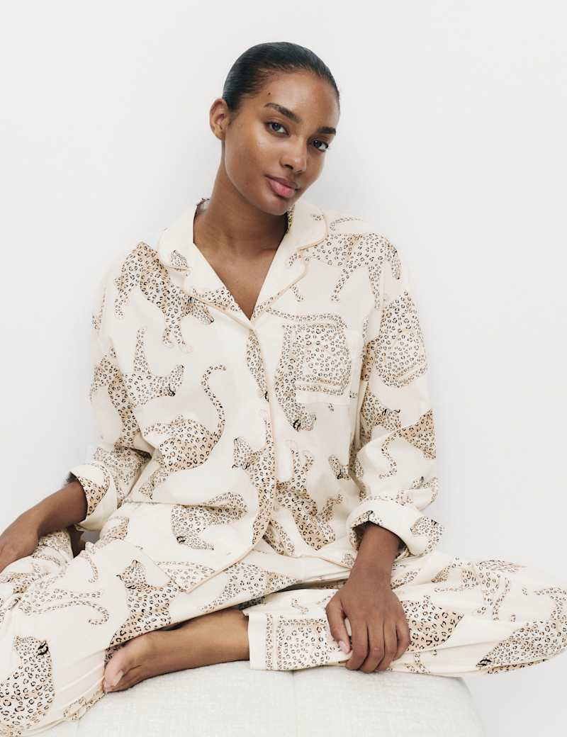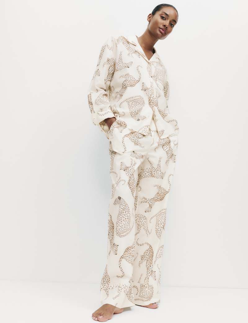 These pure cotton pyjama bottoms are a fun addition to your nightwear. Comfy regular fit, with a flexible elasticated waistline. The all-over print shows a playful design of leopards.