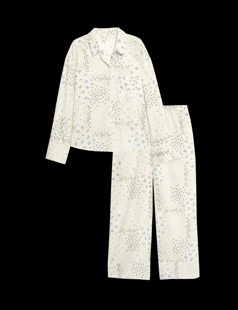 This pyjama set from our M&S Collection features soft pure cotton fabric with an elegant dobby check and delicate floral print. The long-sleeved design includes a collared button-through shirt with a practical chest pocket for a classic touch. Regular fit full-length bottoms with an elasticated waist ensure comfortable movement throughout the night in this comfortable sleepwear. M&S Collection: Easy-to-wear wardrobe staples that combine classic and contemporary styles - perfect pjs for relaxation.