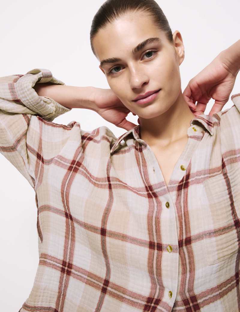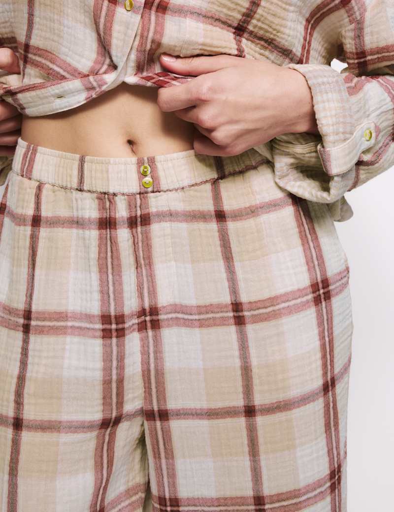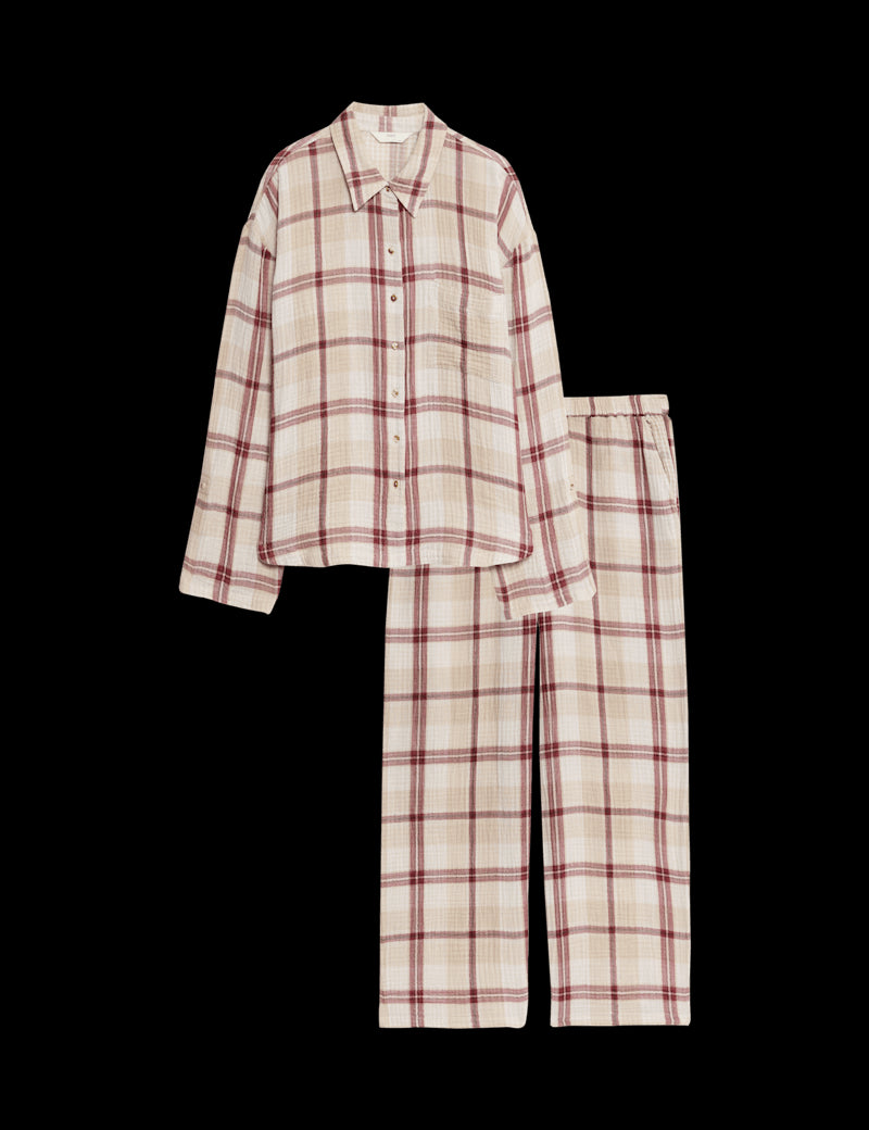 Enjoy a comfy night's sleep with these checked pyjamas made from pure cotton double-cloth fabric. Regular fit. Pyjama shirt fastens with easy buttons. The full-length bottoms feature a flexible elasticated waistband.