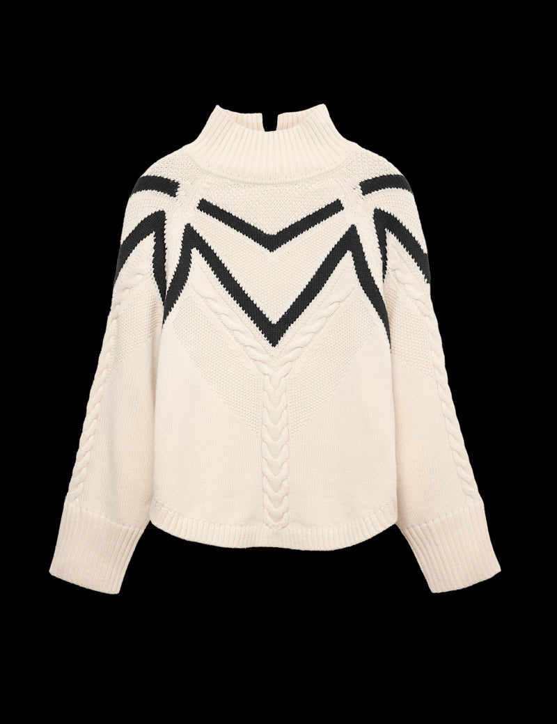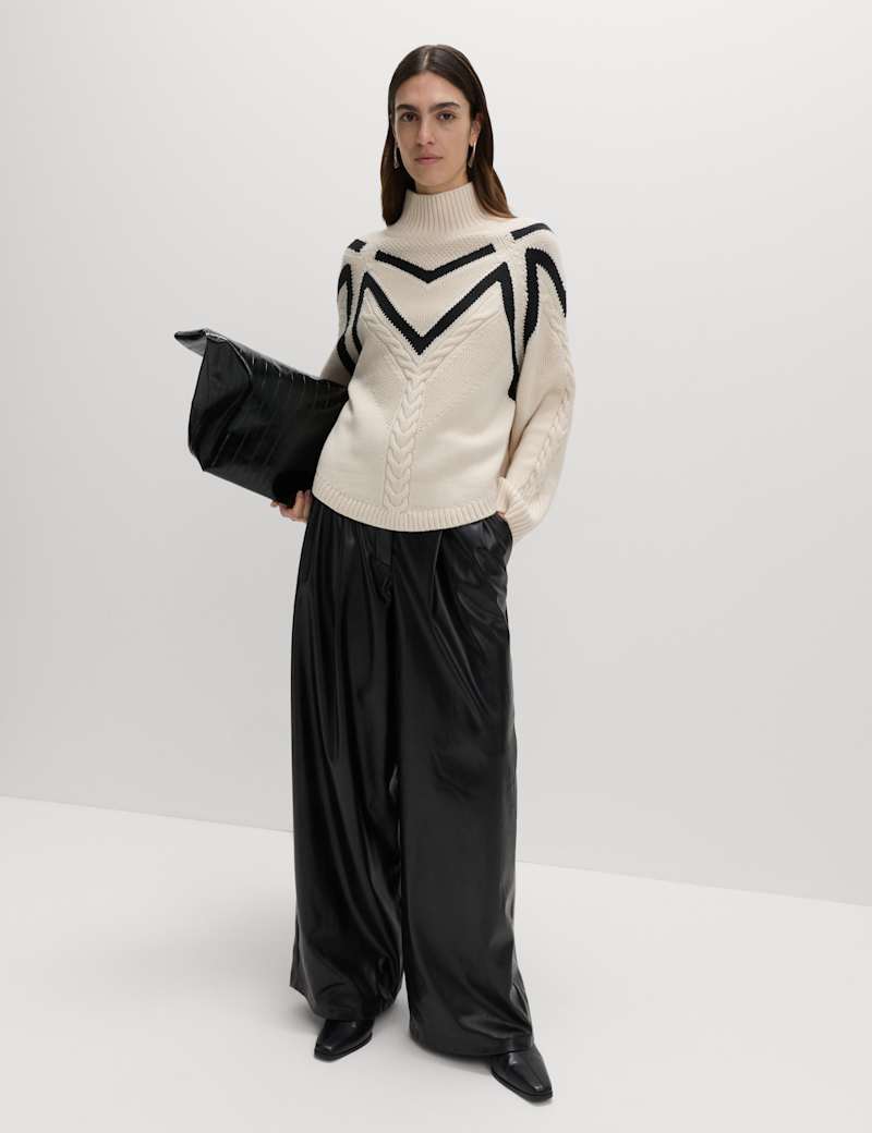 This textured jumper is made with wool for an extra-cosy feel. It's designed in an easy relaxed fit, with a snug funnel neck and neat ribbed trims. The intarsia pattern on the front and sleeves makes it a standout piece.