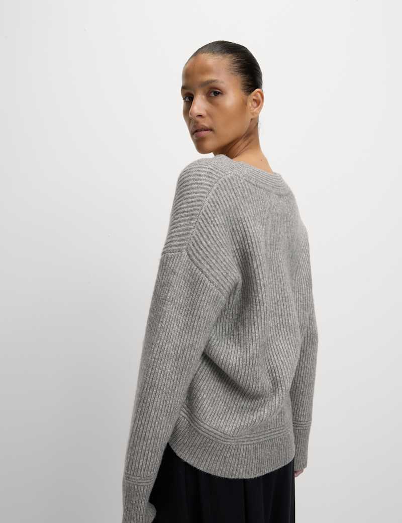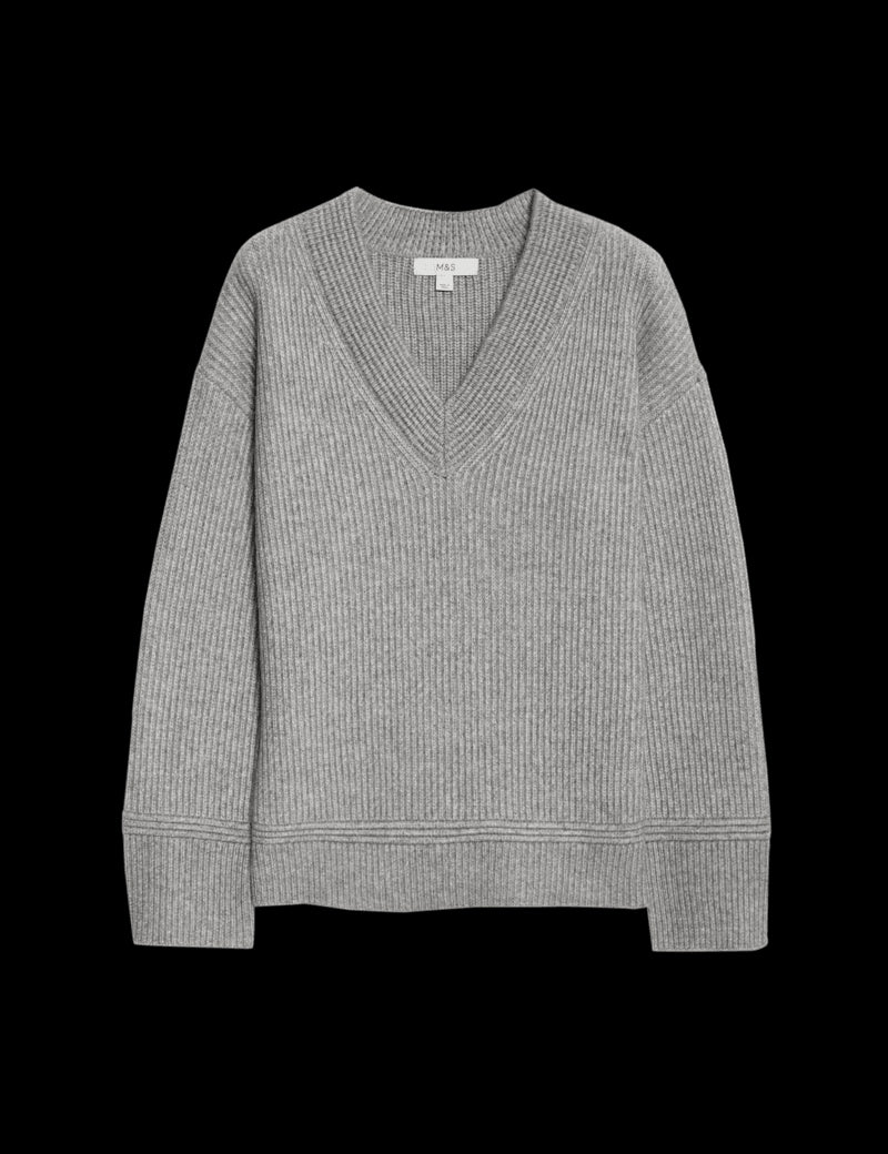 Cloud-Yarn Ribbed V-Neck Jumper