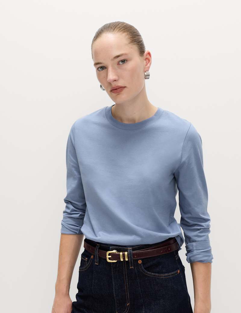 This pure cotton t-shirt is a timeless addition to your casual wardrobe. It's cut in our comfortable everyday fit, with long sleeves for extra coverage. A neat crew neckline completes the laid-back look.