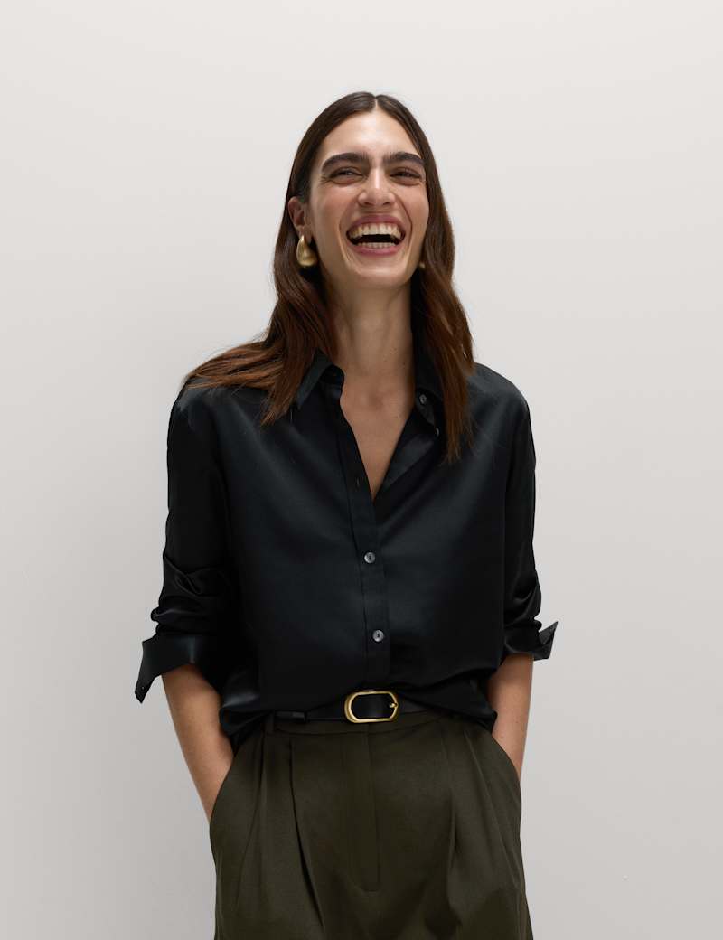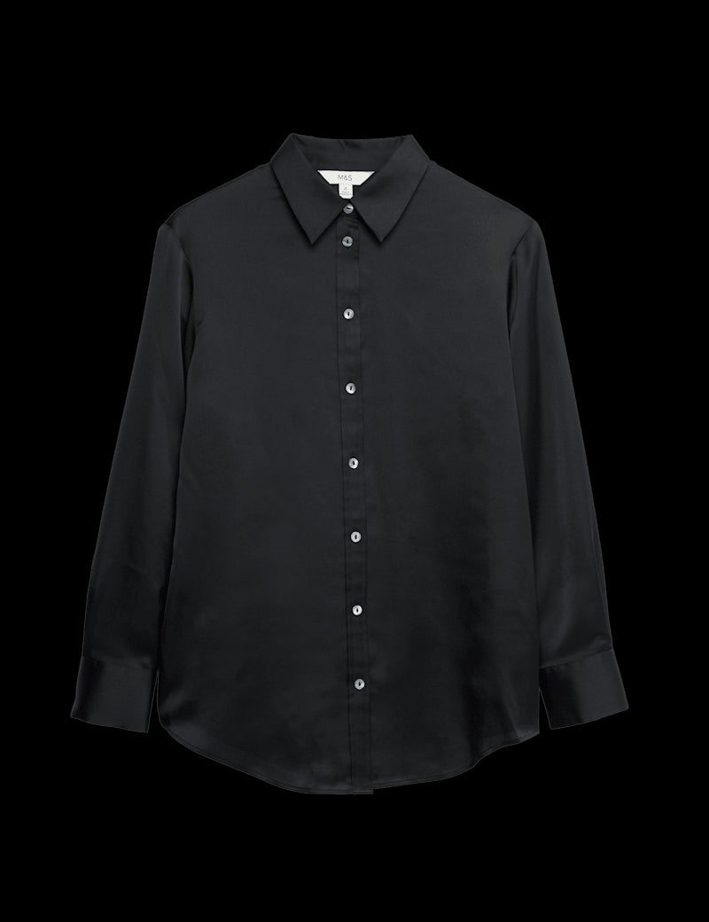 Elevate your ensemble with this luxuriously smooth satin shirt. It's designed in a drapey regular fit, with an easy button-through fastening and a smart collared neckline. Cuffed long sleeves lend a neat finish.
