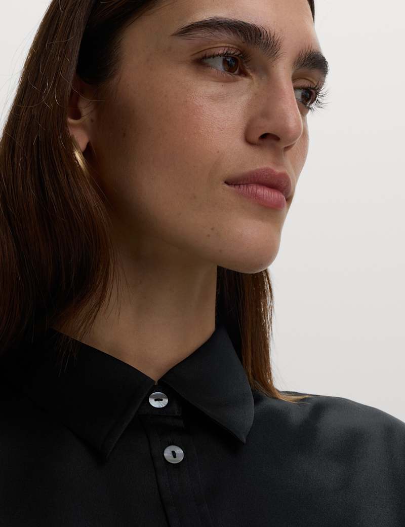 Satin Collared Button Through Shirt