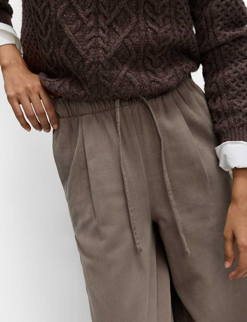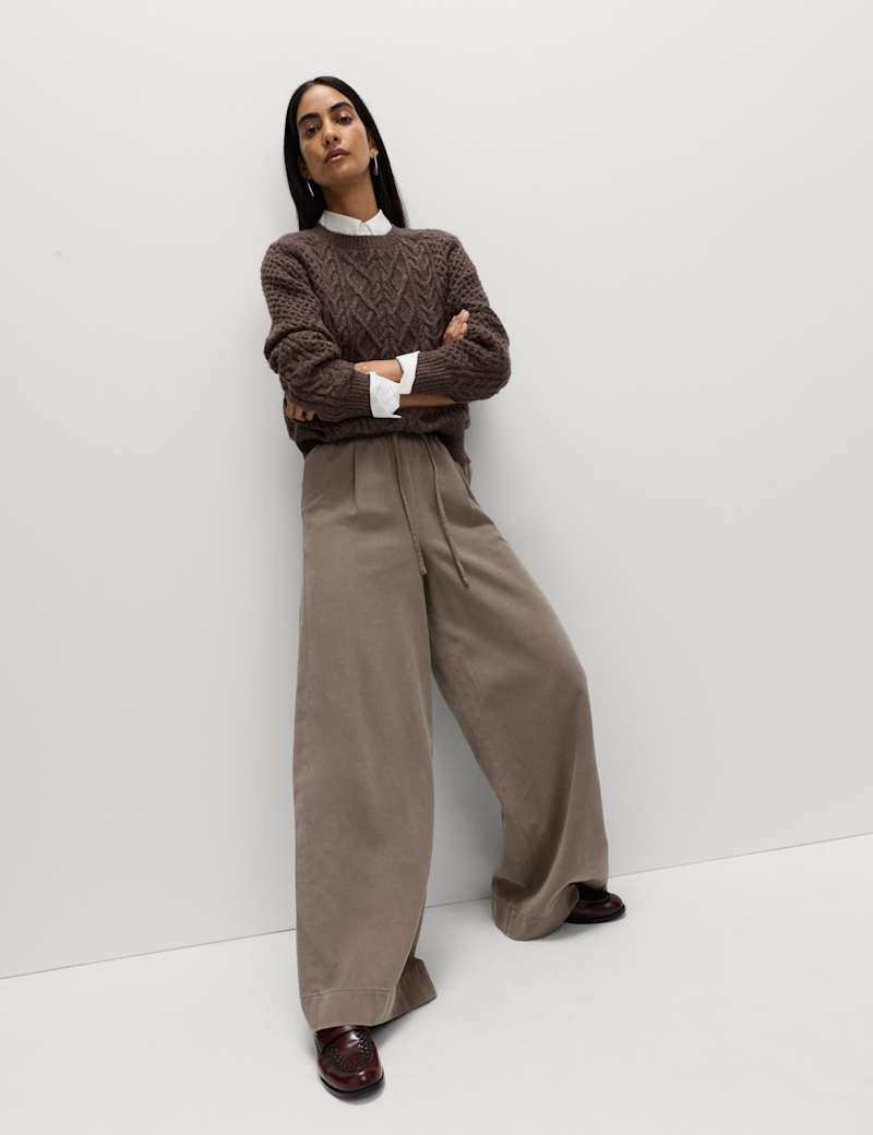Made from a breathable cotton-lyocell blend, these trousers are a comfy choice for smart-casual days. They're designed in a flattering wide-leg shape, with a stretchy high waist. The fabric is garment-dyed for a laundered appearance and a soft feel.