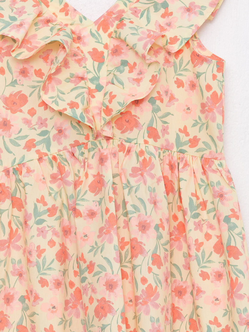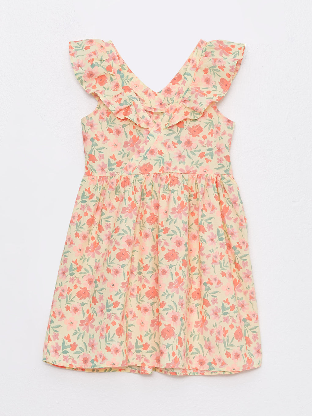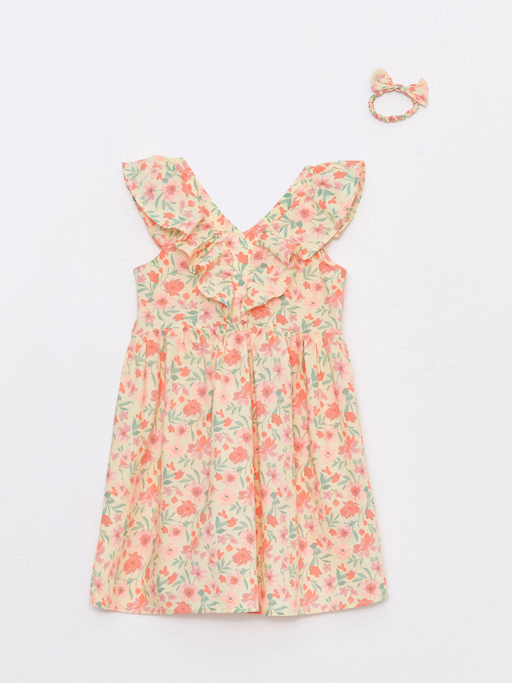 V-Neck Printed Short Sleeve Girls Dress and Buckle