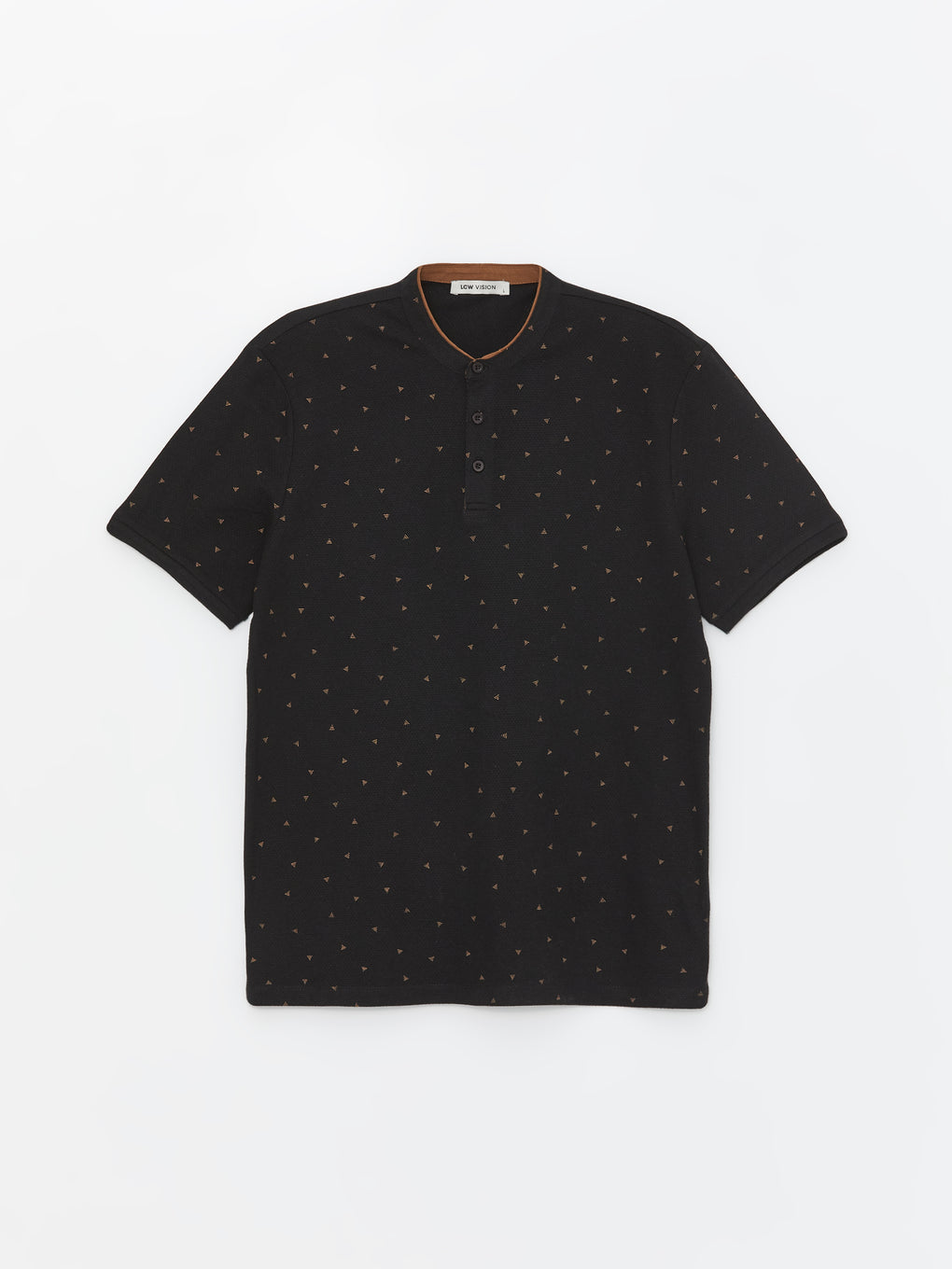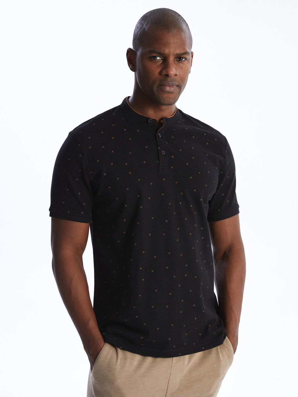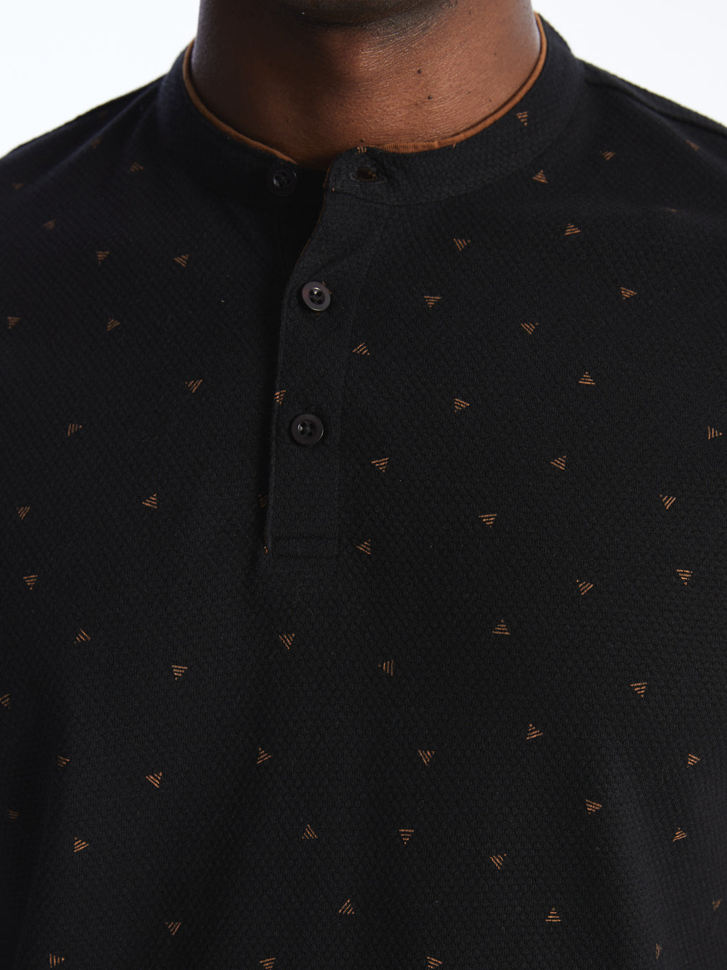 Grandad Collar Short Sleeve Patterned Men's T-Shirt