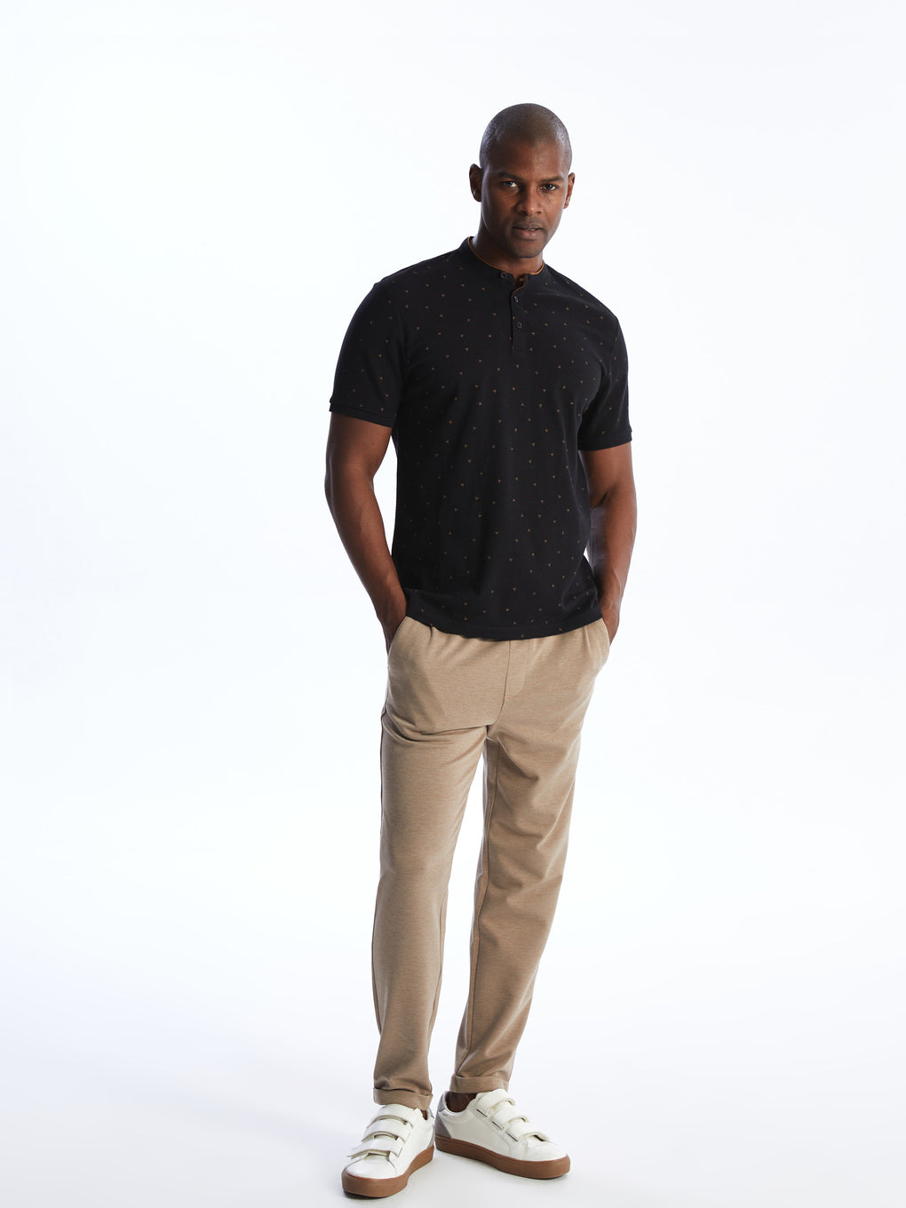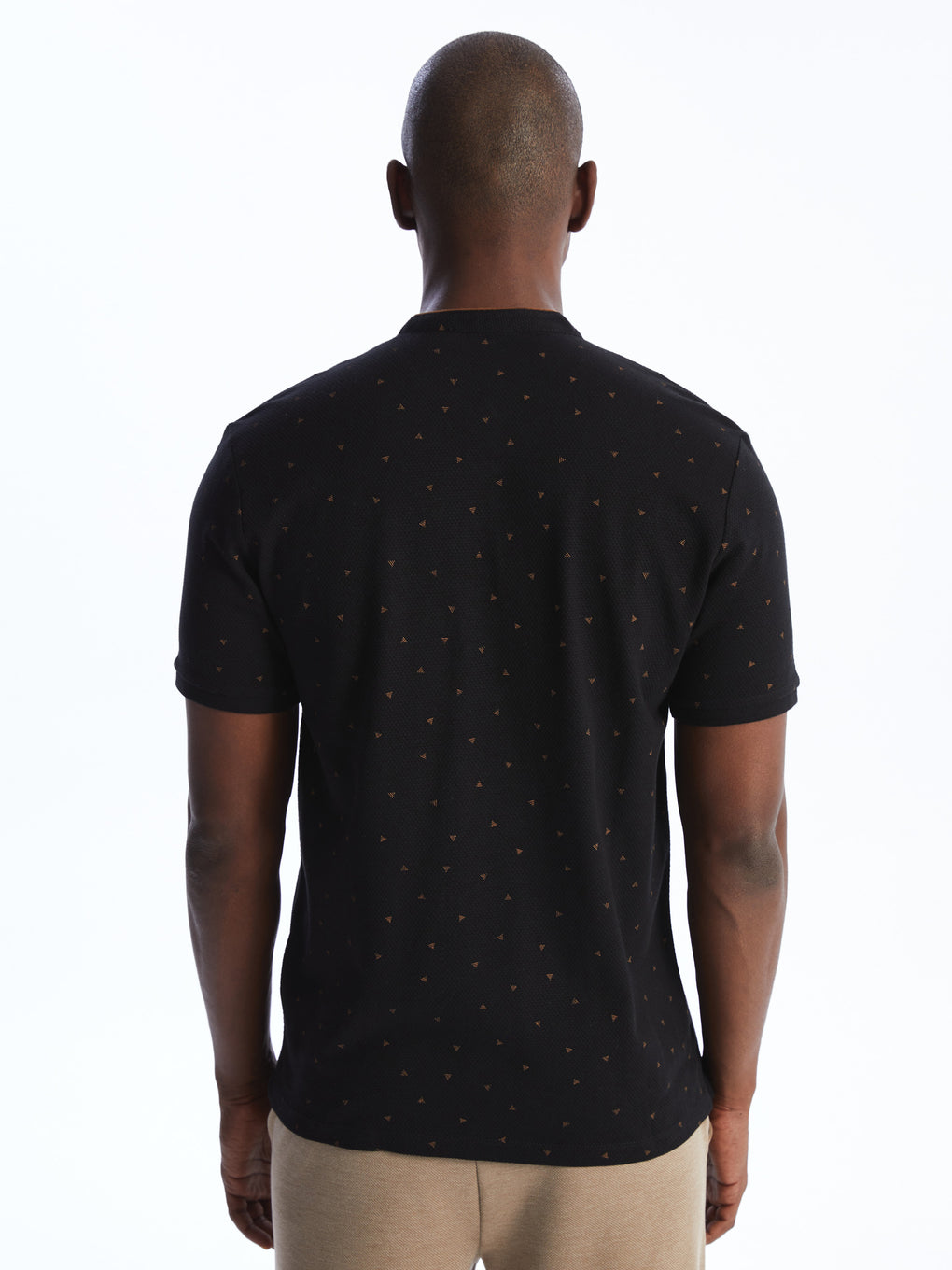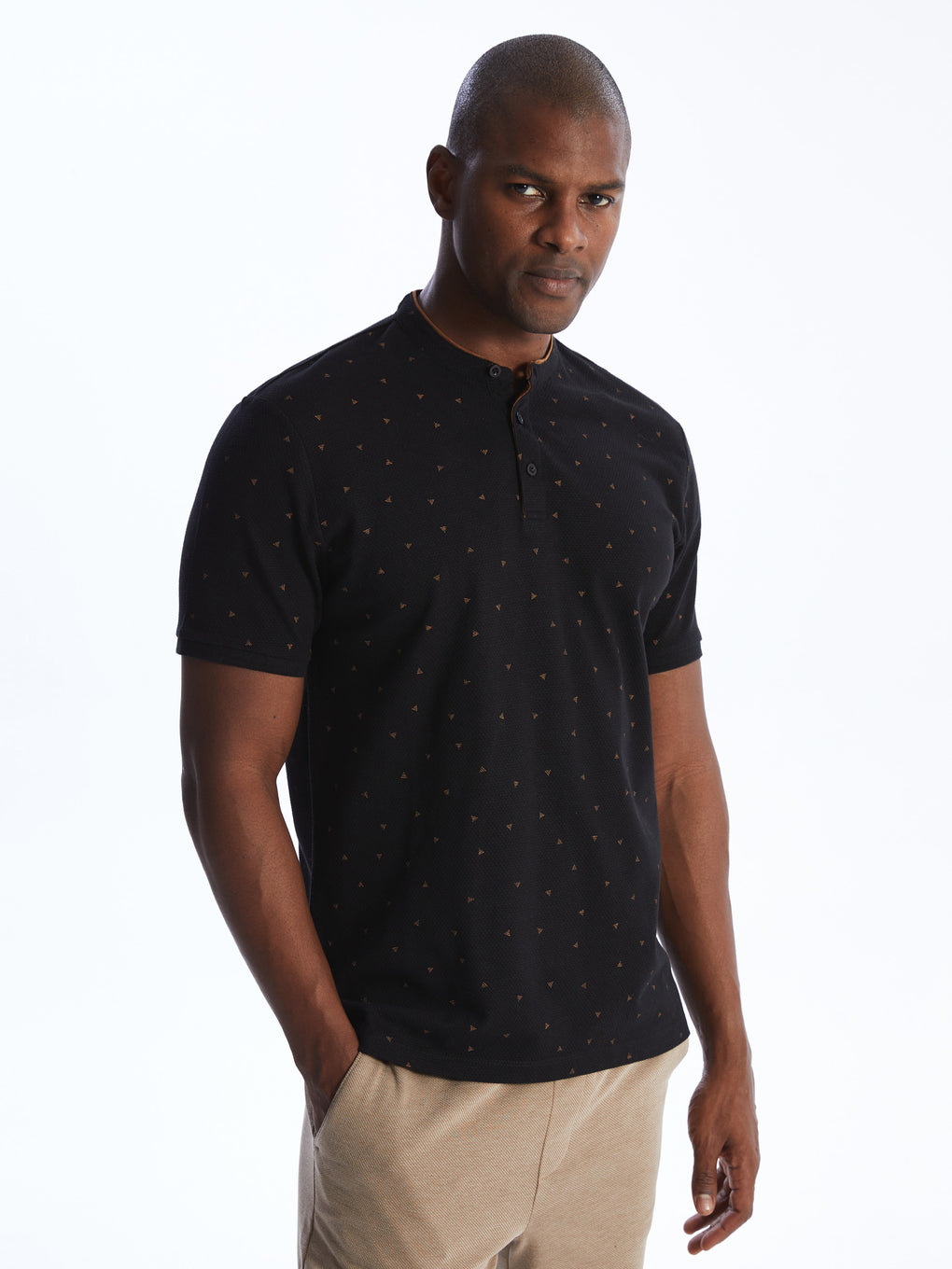 Grandad Collar Short Sleeve Patterned Men's T-Shirt