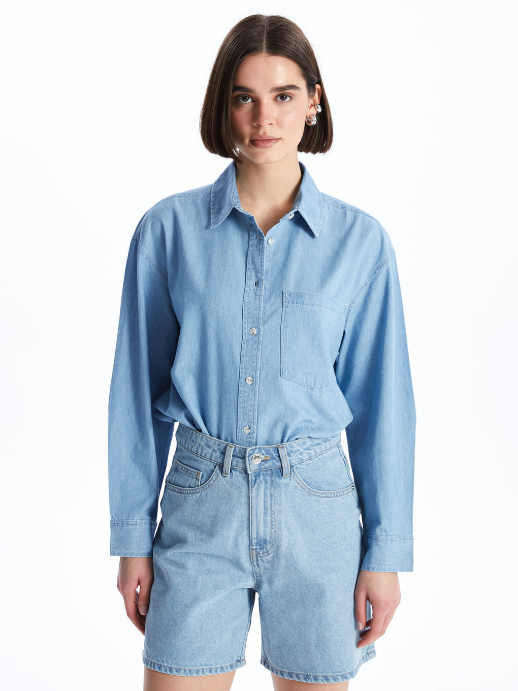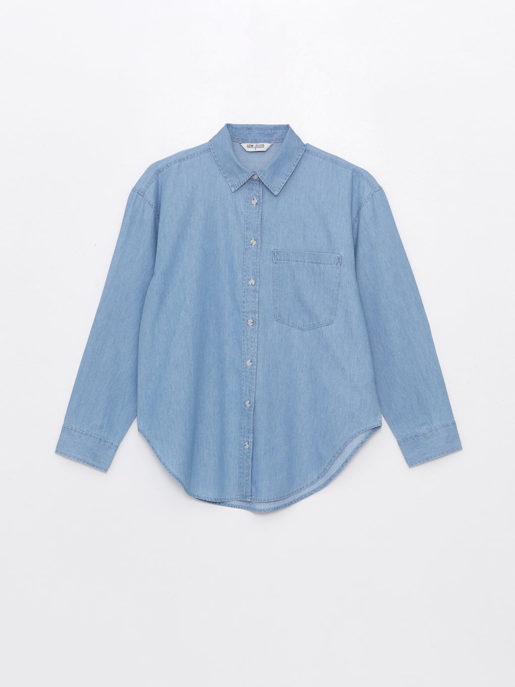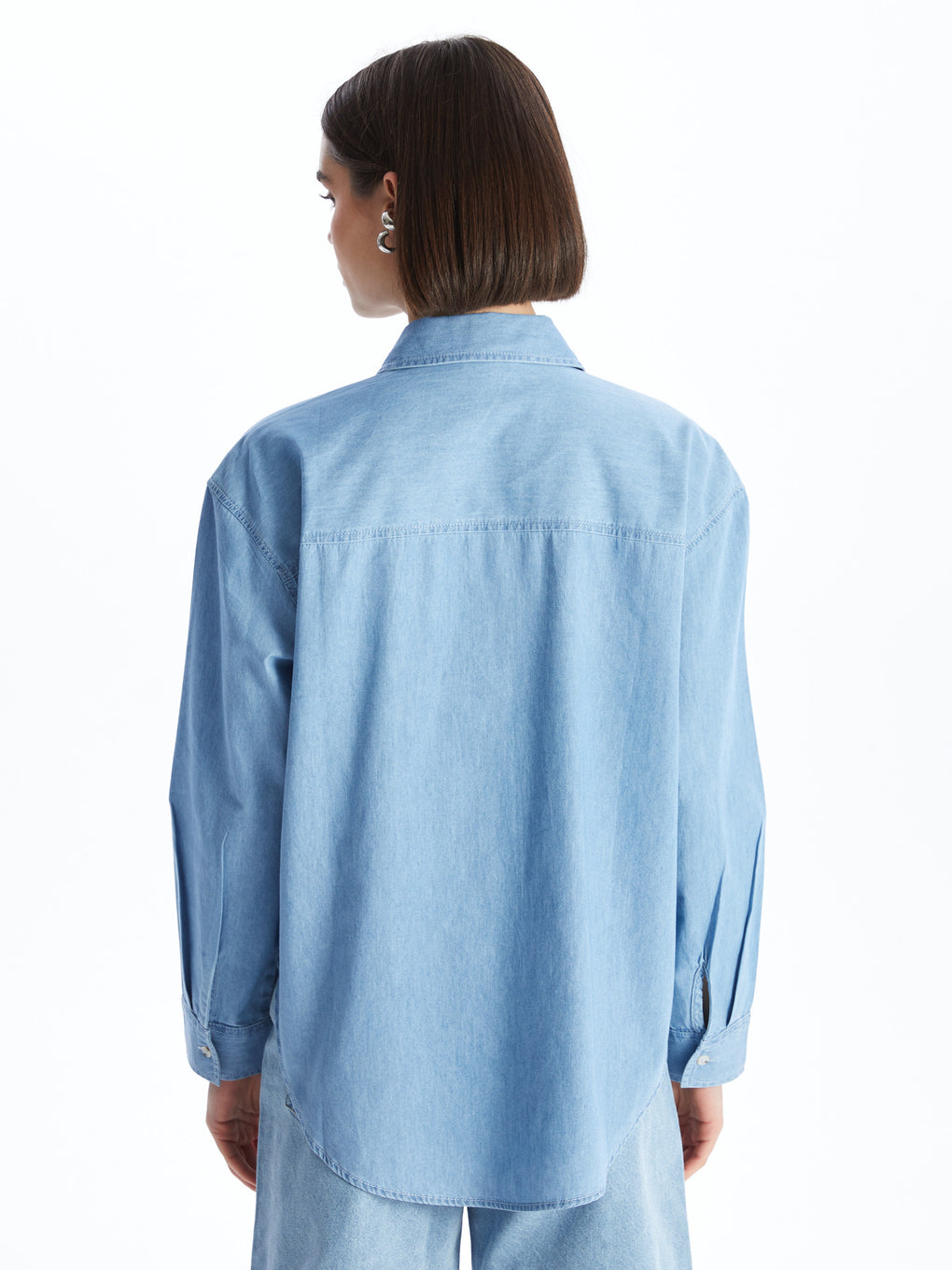 Straight Long Sleeve Oversize Women's Jean Shirt