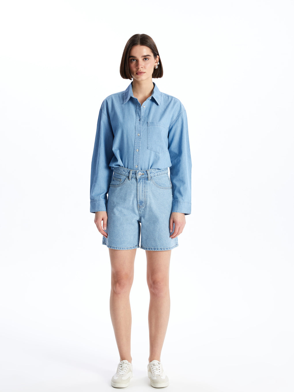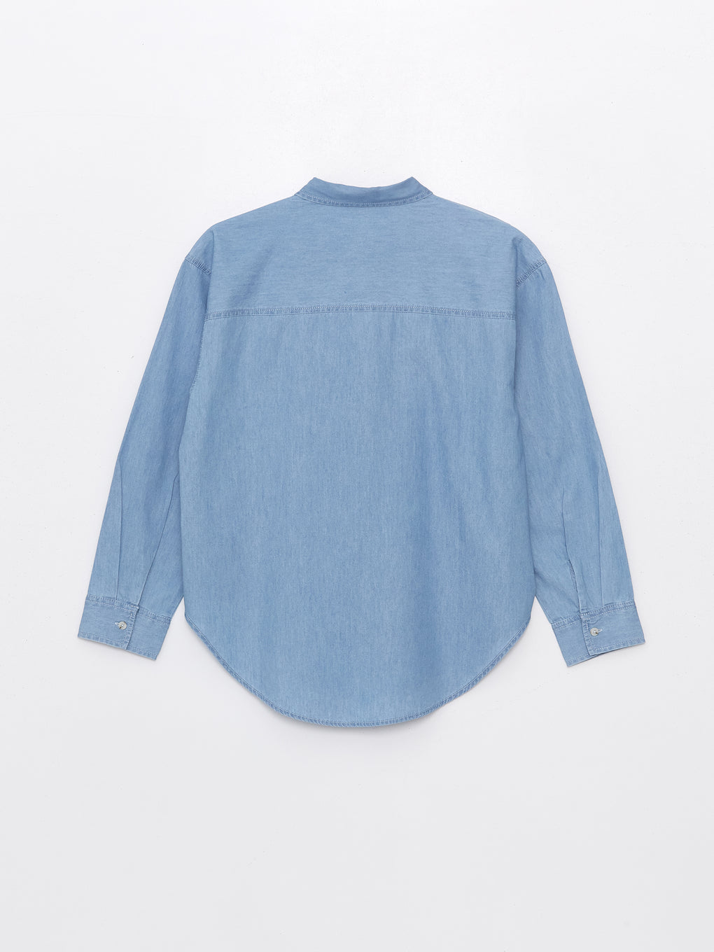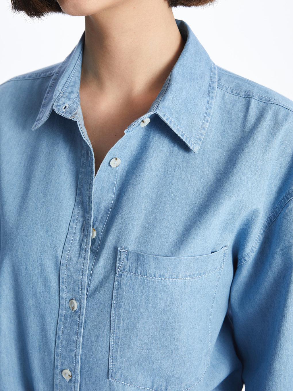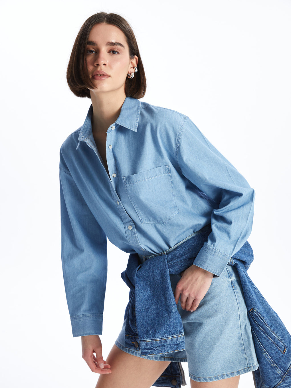 Straight Long Sleeve Oversize Women's Jean Shirt
